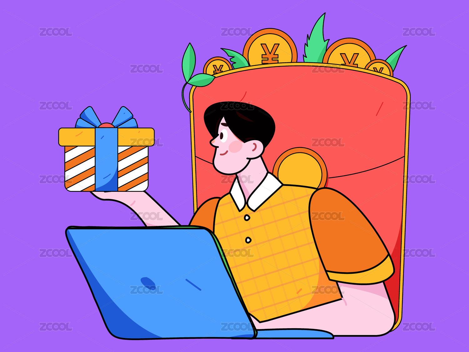 使用红包拉新促活扁平矢量人物概念运营手绘