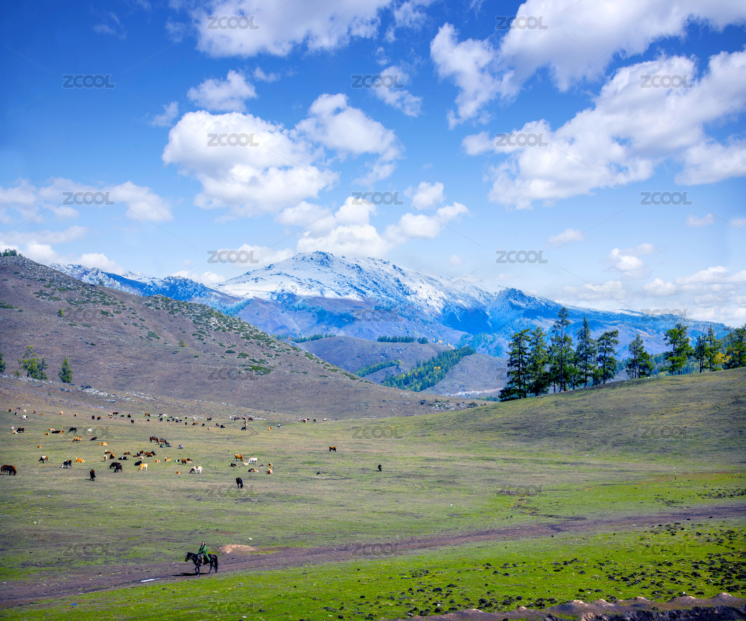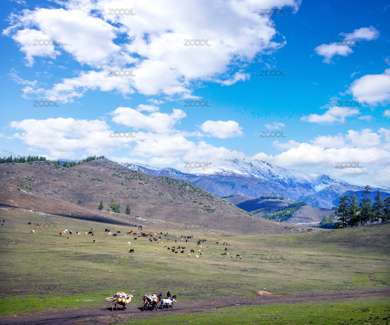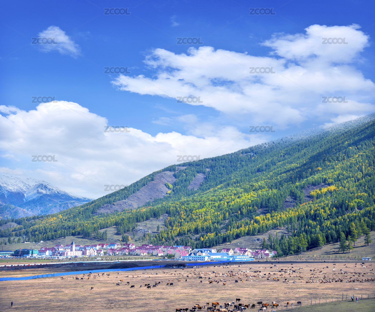 中国新疆布尔津县贾登峪镇旁草场牛羊群