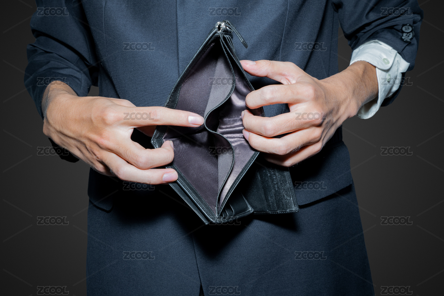 贫穷的人拿着钱包没有一点钱穷输光了钱低工资手头紧概念