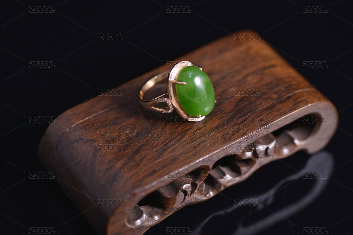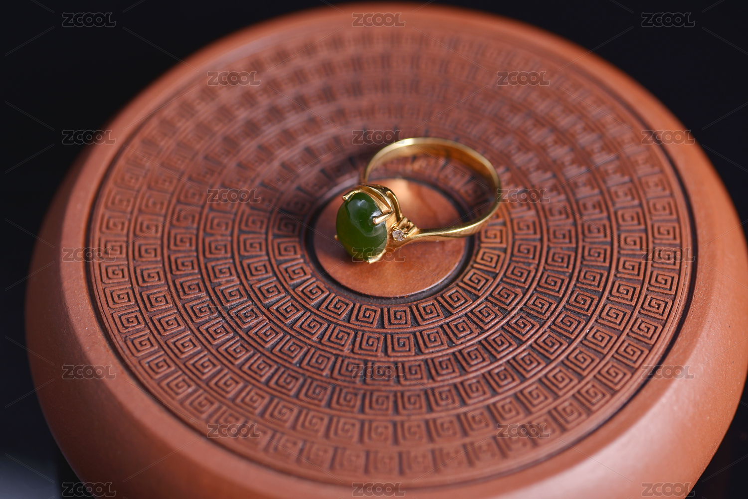 暗色背景上的和田玉戒指