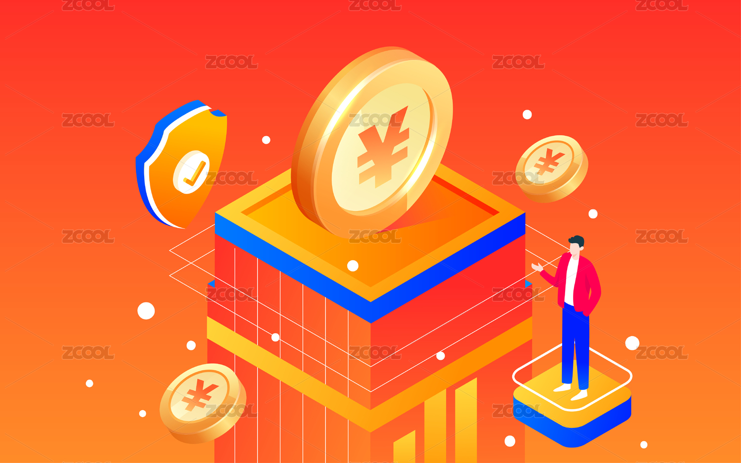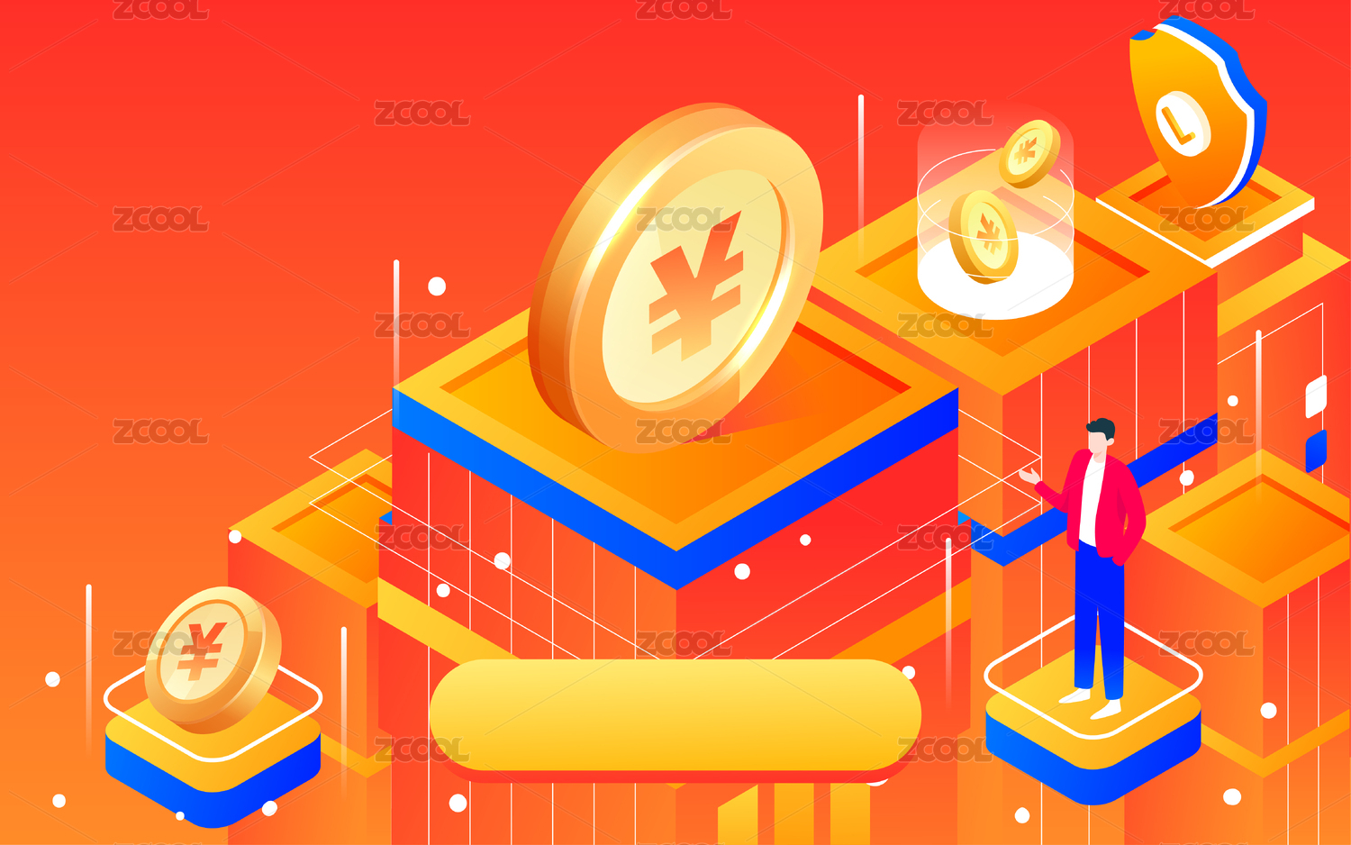 金融科技理财等距背景插画财富商务活动海报