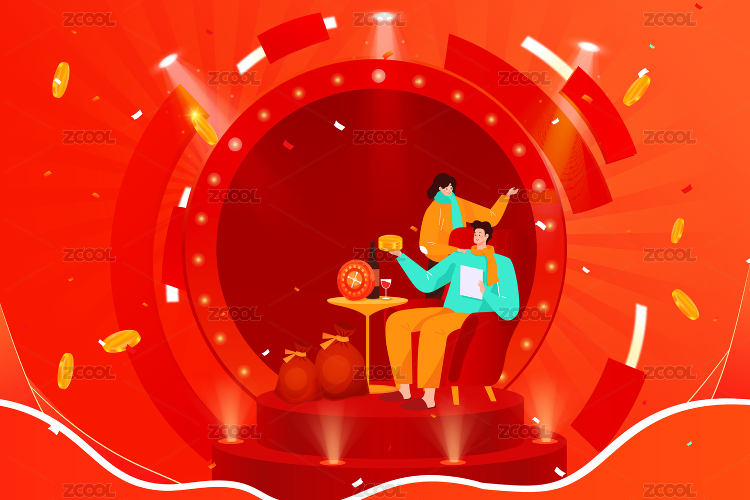 金融理财优惠券插画财富抽奖礼盒活动海报