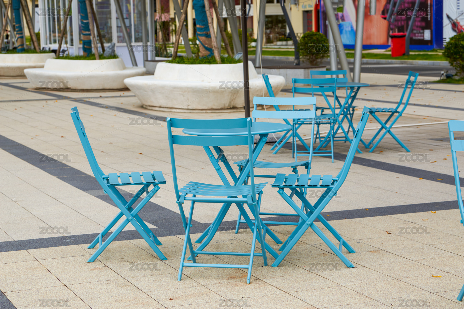 室外咖啡店,街边圆桌休闲椅,