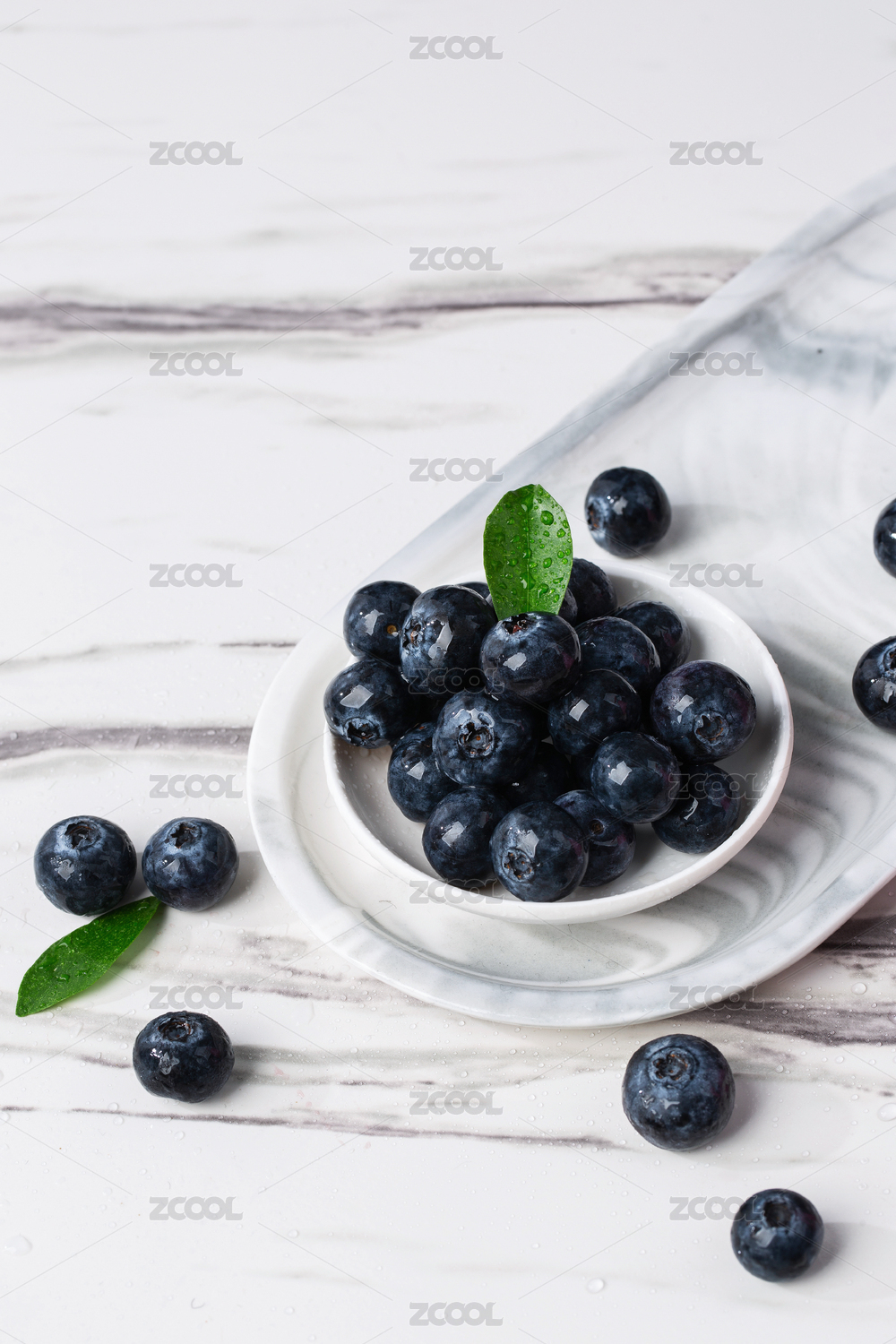 大理石桌子上的蓝莓