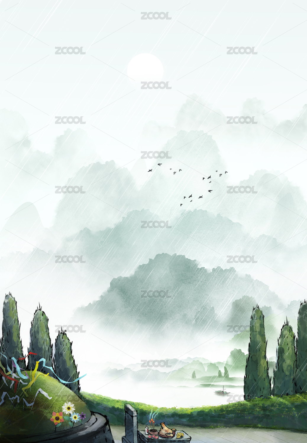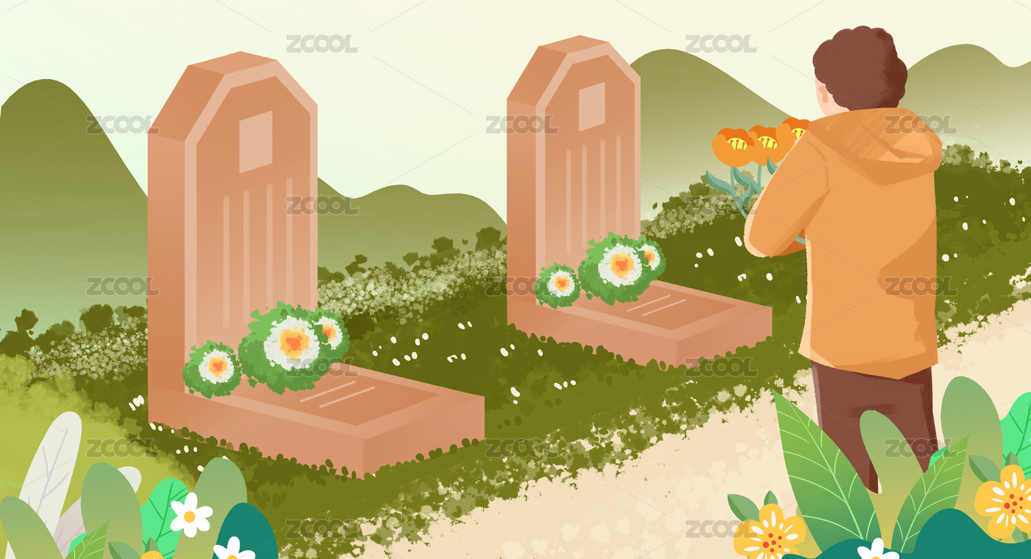 清明节扫墓插画二十四节气清明背景游玩踏青