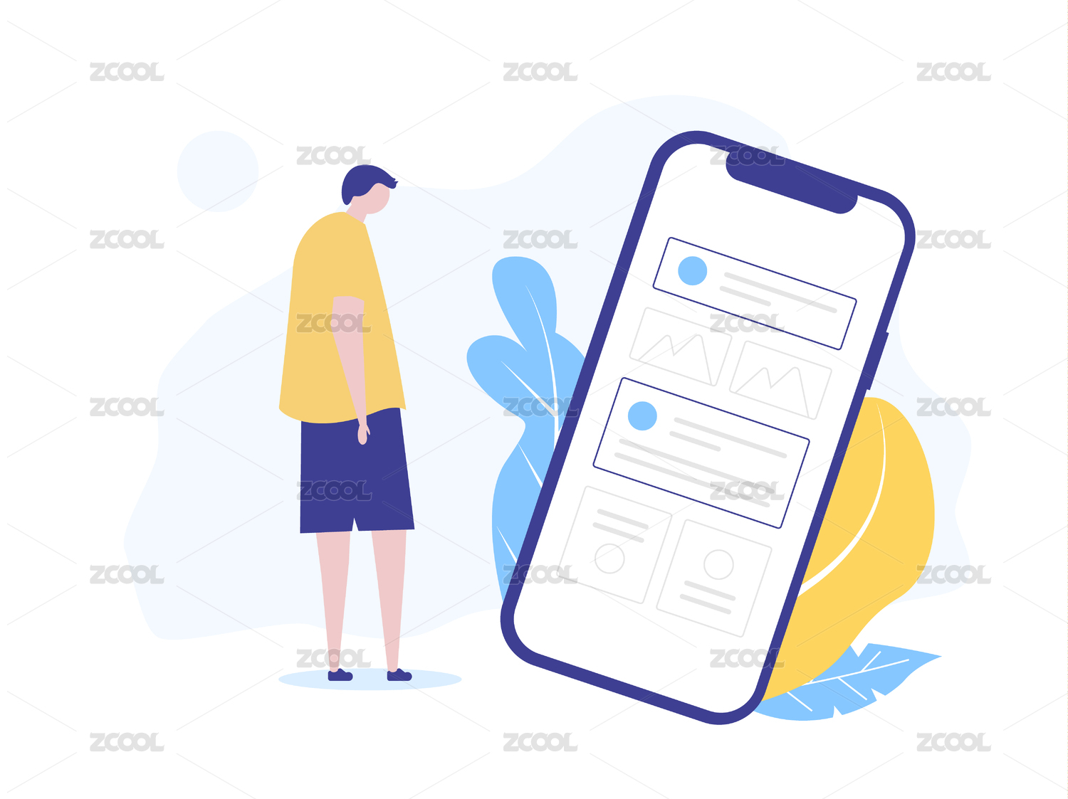男性VR眼镜体验应用图标流体时尚矢量插画