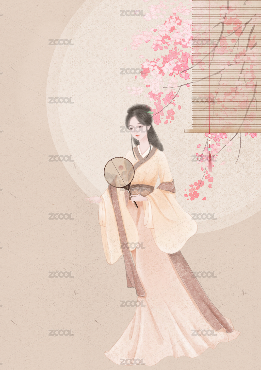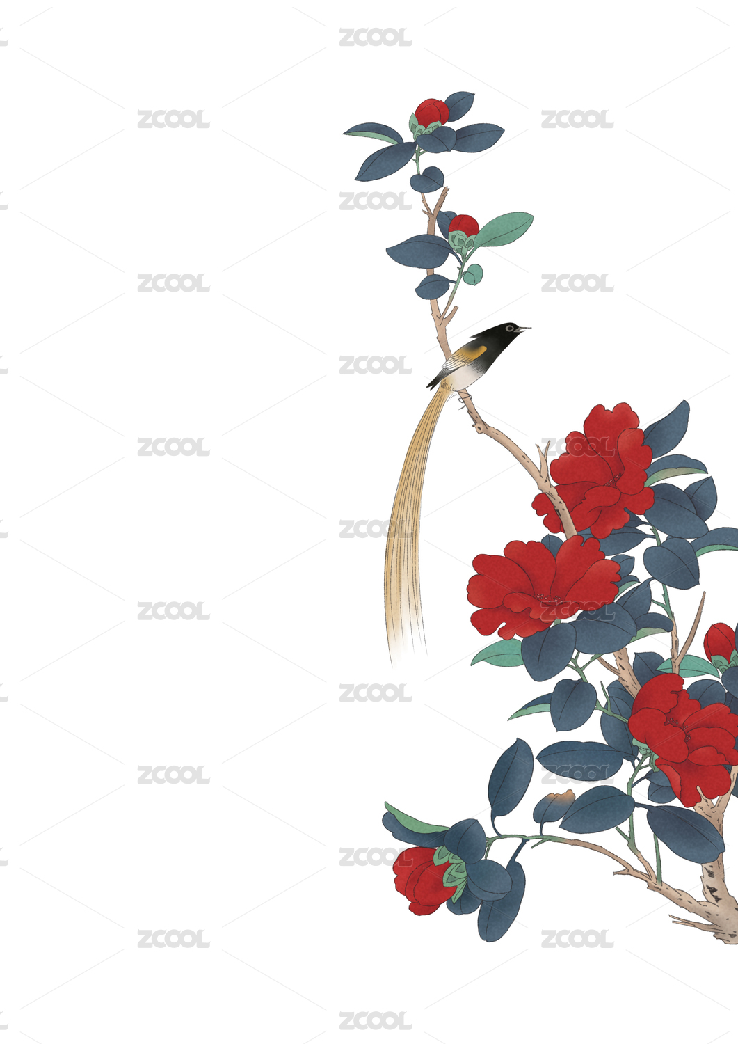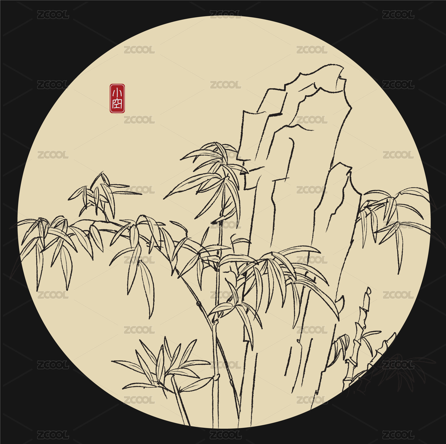 竹鸟雀工笔白描中国画矢量手绘线稿