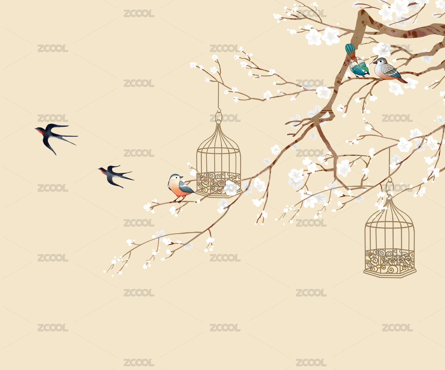 立冬龙宝躲在树枝后看两只小鸟秀恩爱