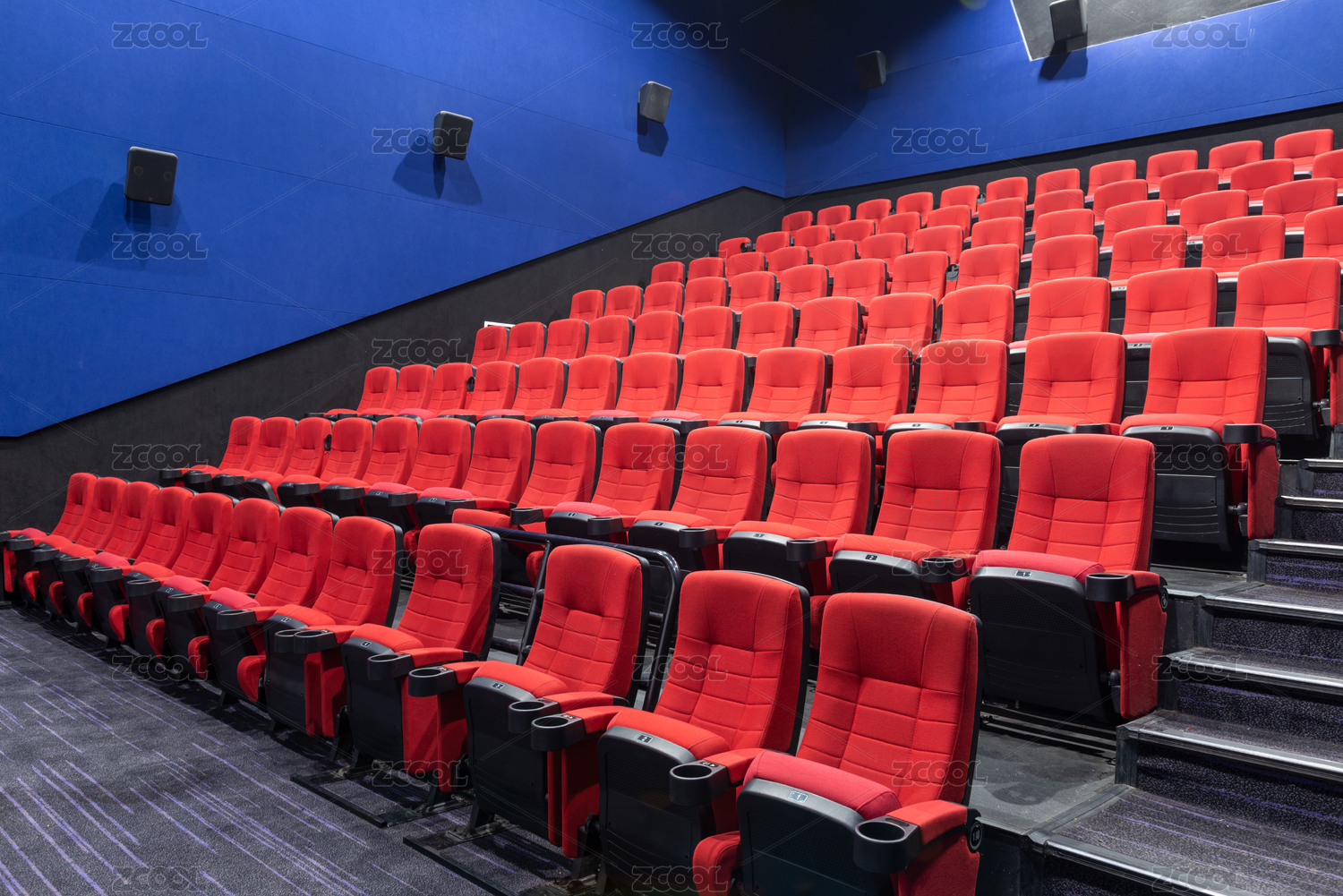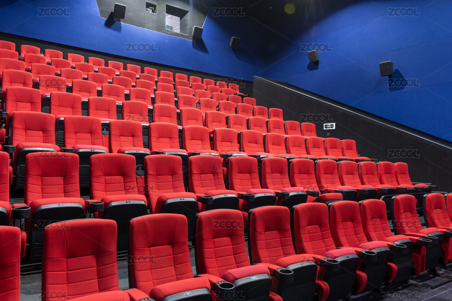 电影院观影厅内景红色软席座椅