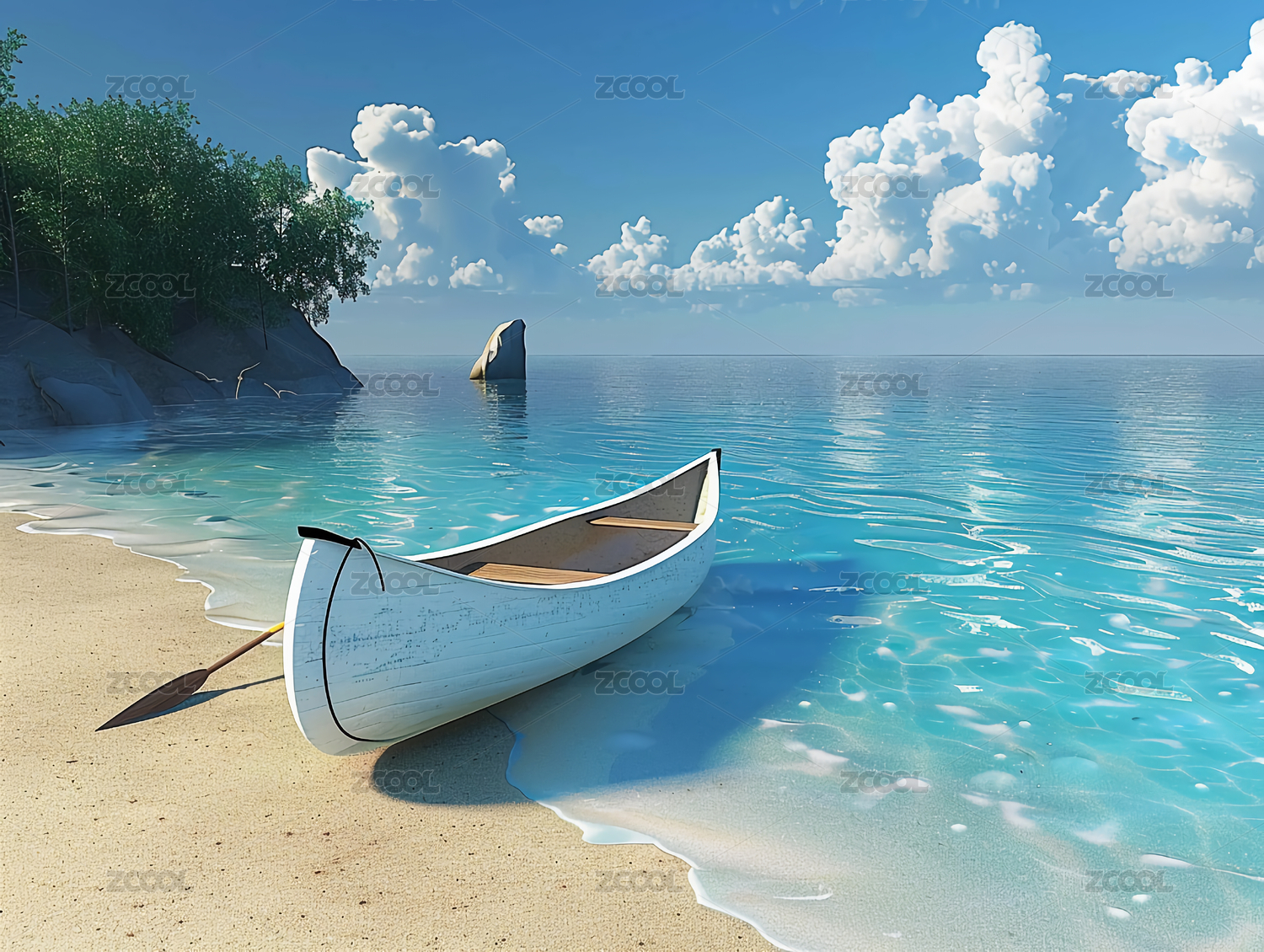 威海城市旅游风景插画之伴月湾风光
