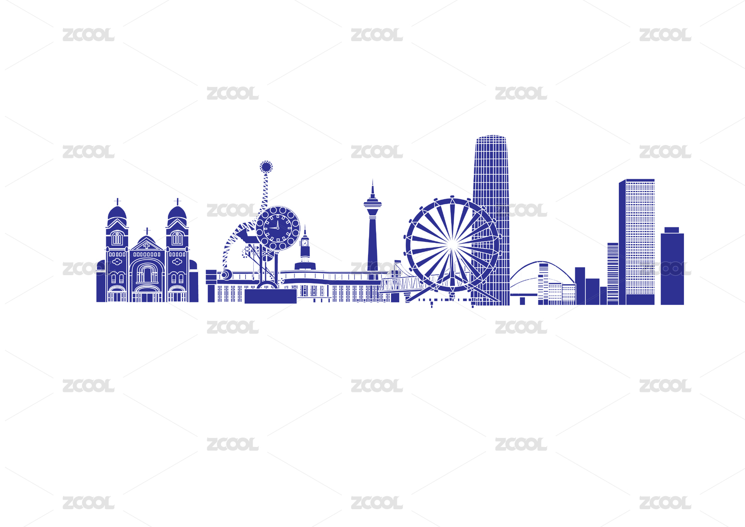 深蓝色天津城市风景建筑插画