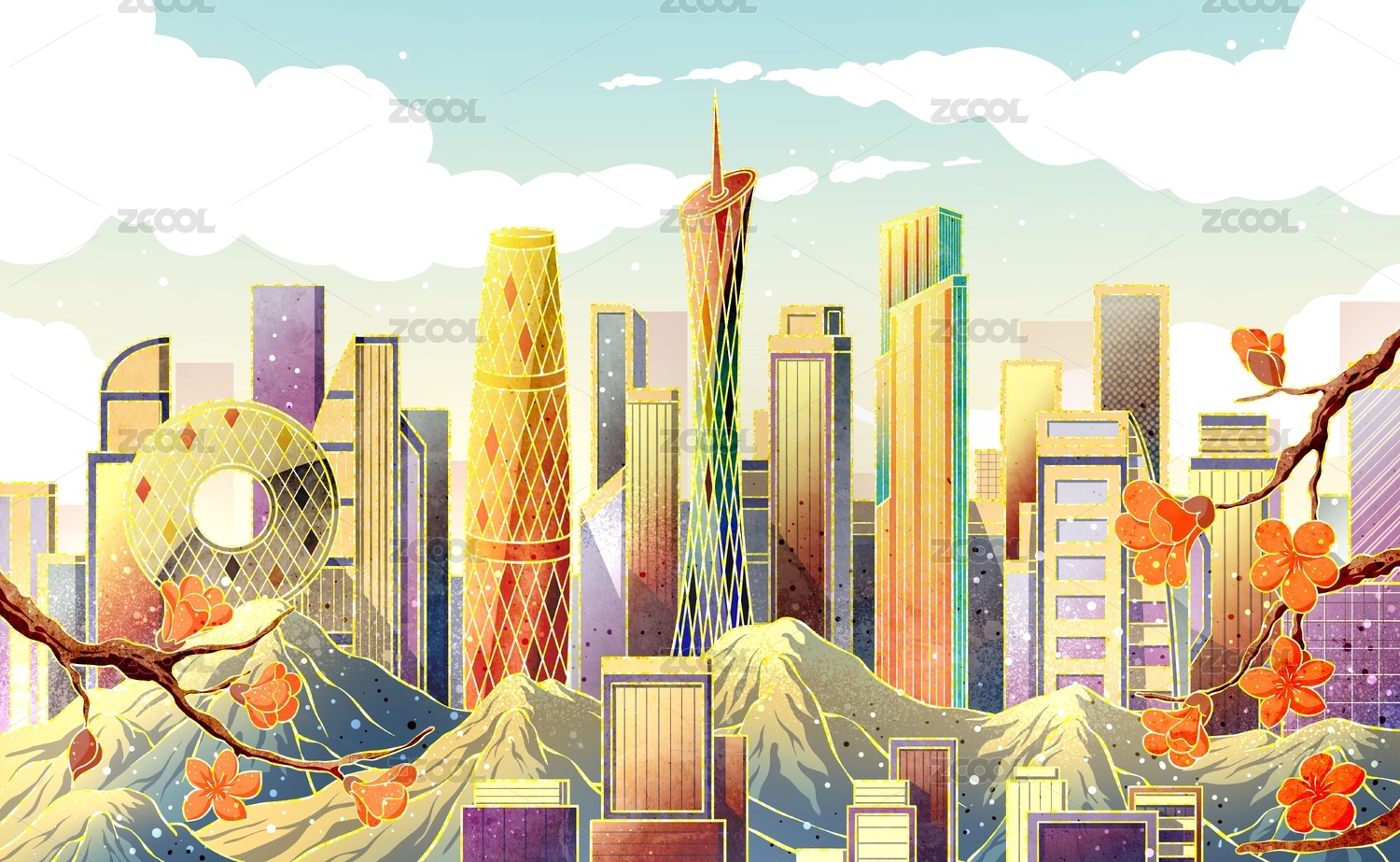 广州城市风景插画
