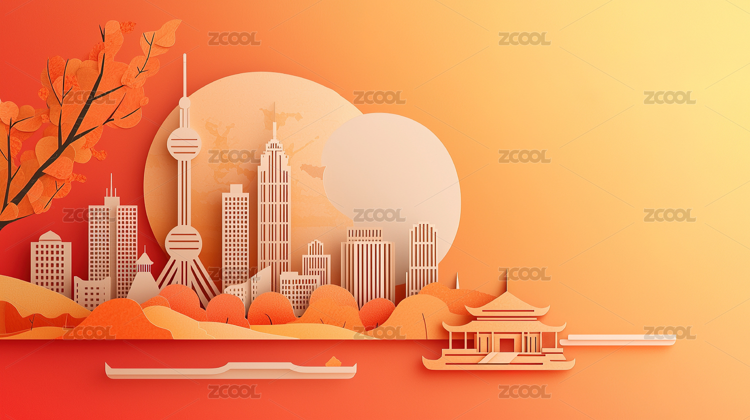 剪纸风上海城市风景插画