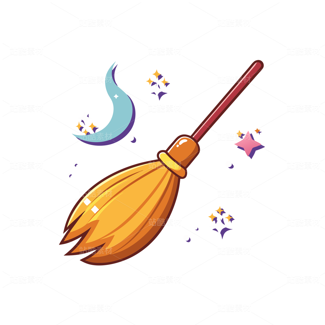 可爱女巫披风扫把素材