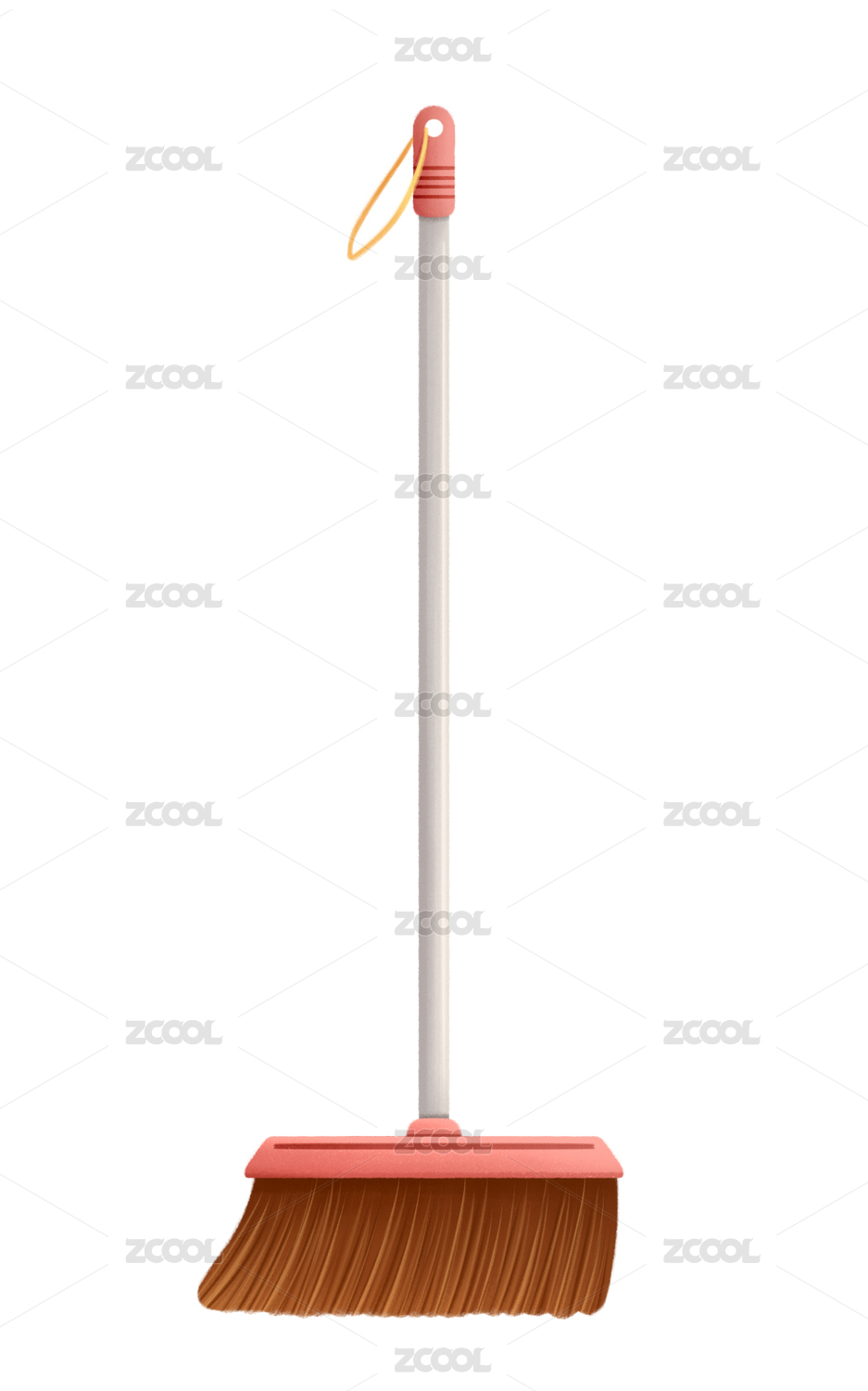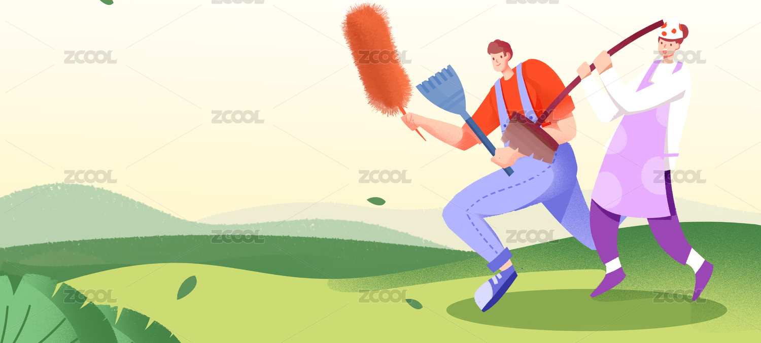 卡通手绘男子女子手拿扫把鸡毛掸子大扫除插