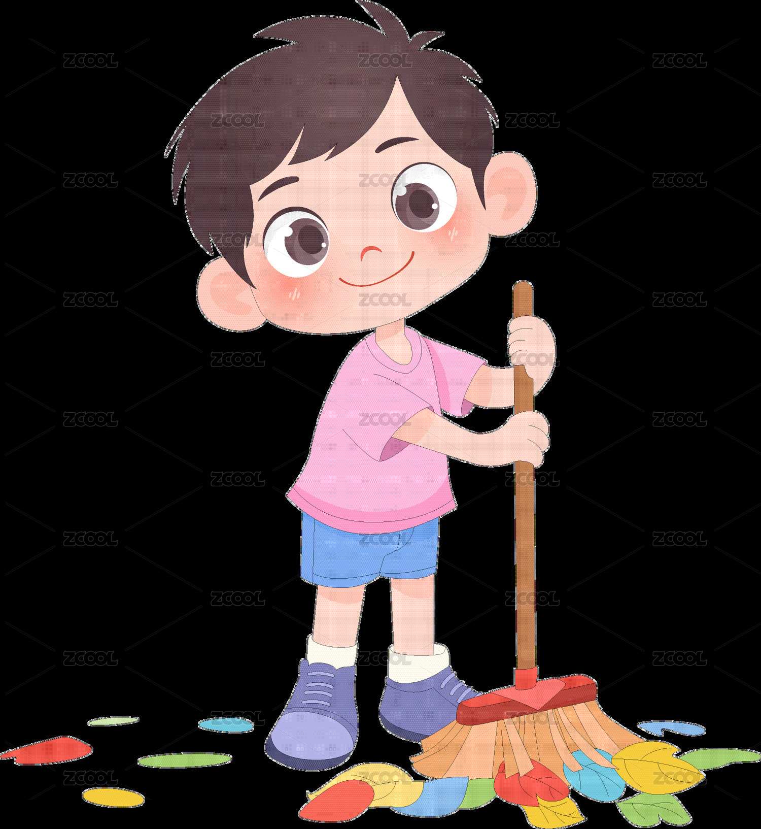 孩子做家务拿扫把扫落叶打扫卫生儿童插画