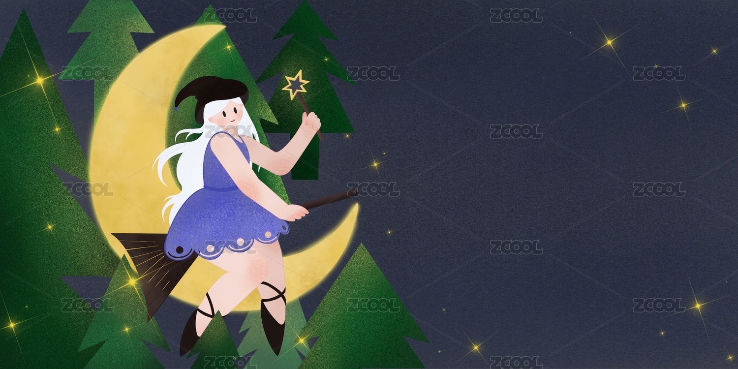 万圣节骑着扫把的女巫