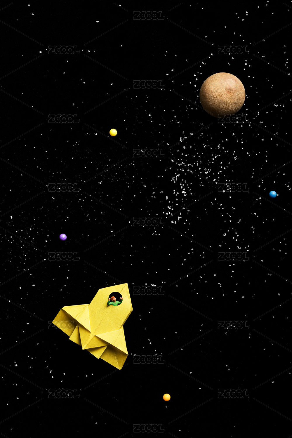 星球宇宙太空折纸飞机太空飞船奔向月球樟脑球广告