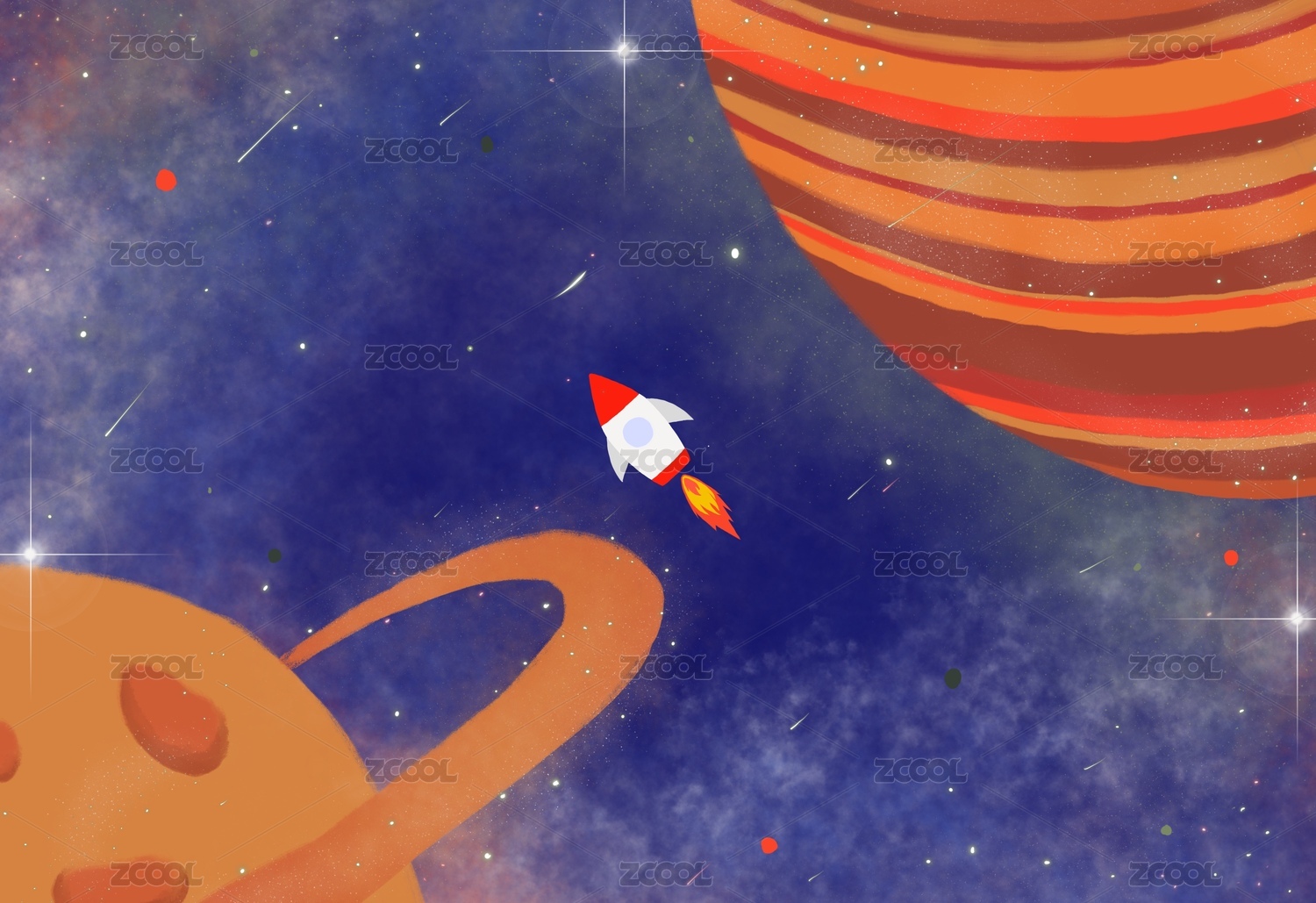 蓝色橘色太空飞船