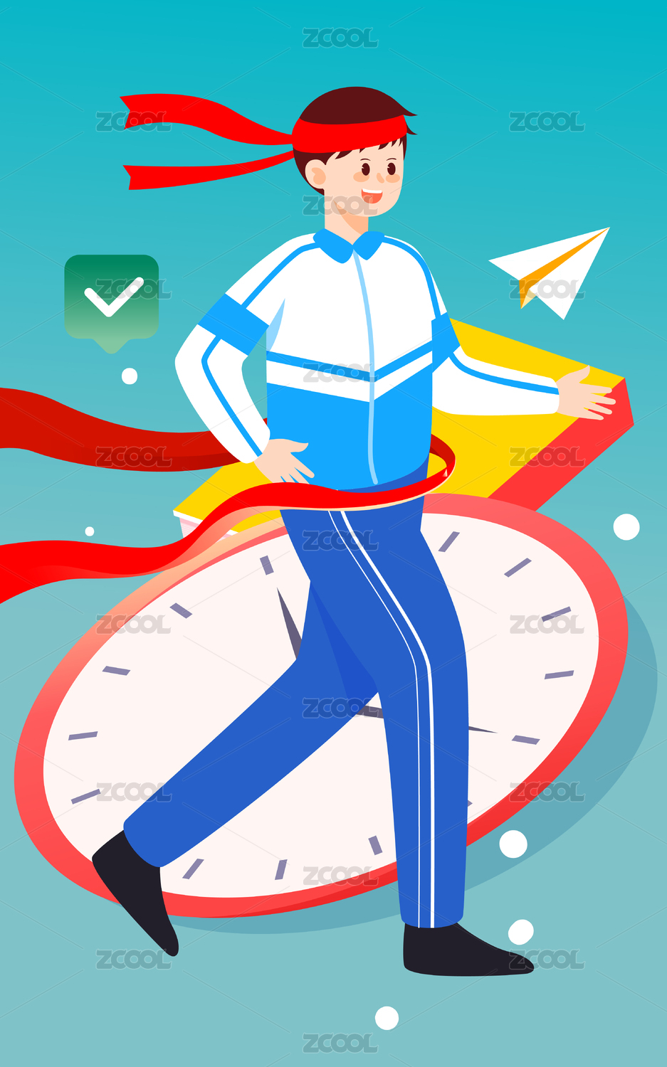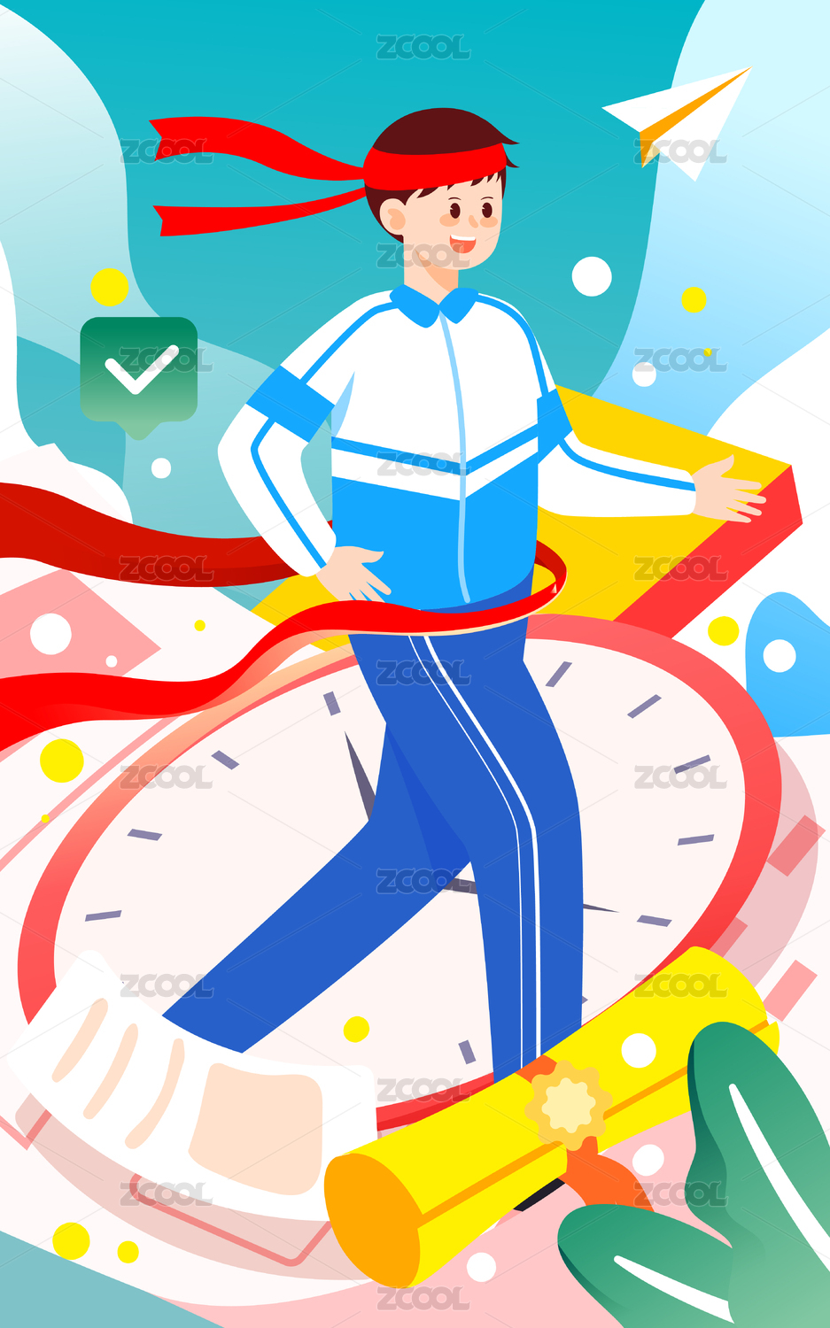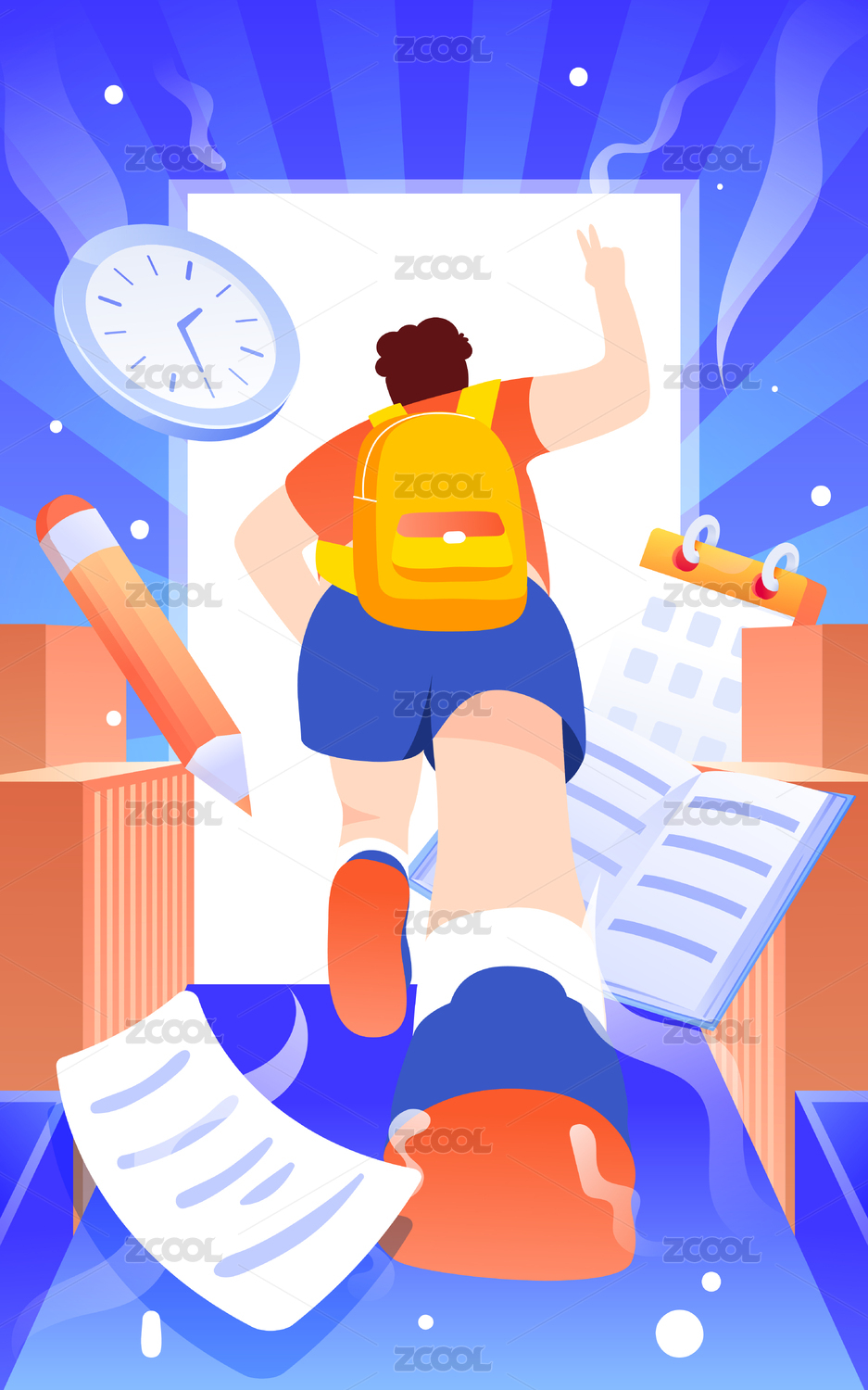 人物奔跑学习开学插画学生高考冲刺加油海报