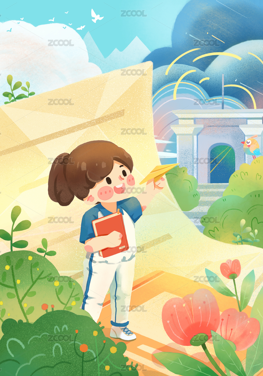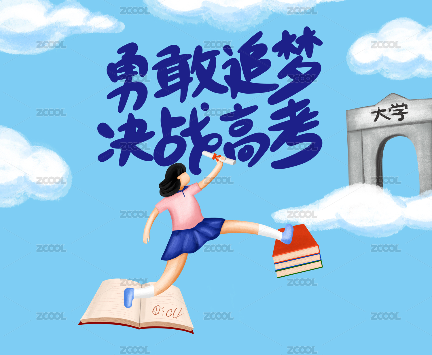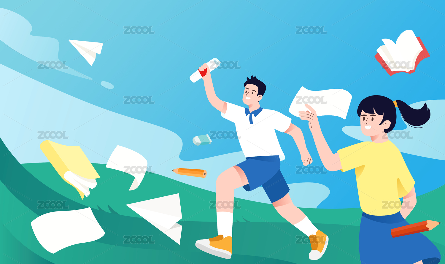 人物奔跑学习开学插画学生高考冲刺加油海报