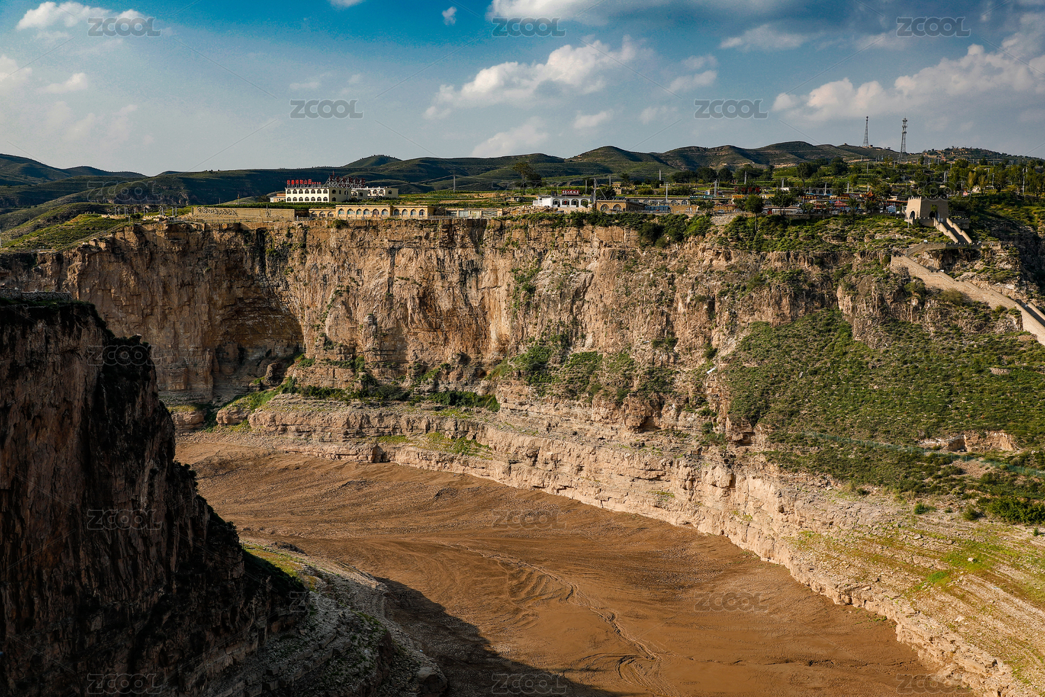 中国山西省偏关县黎明的老牛湾崖壁山村