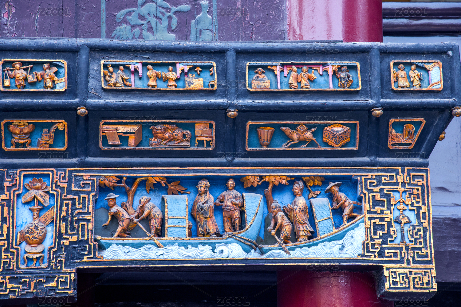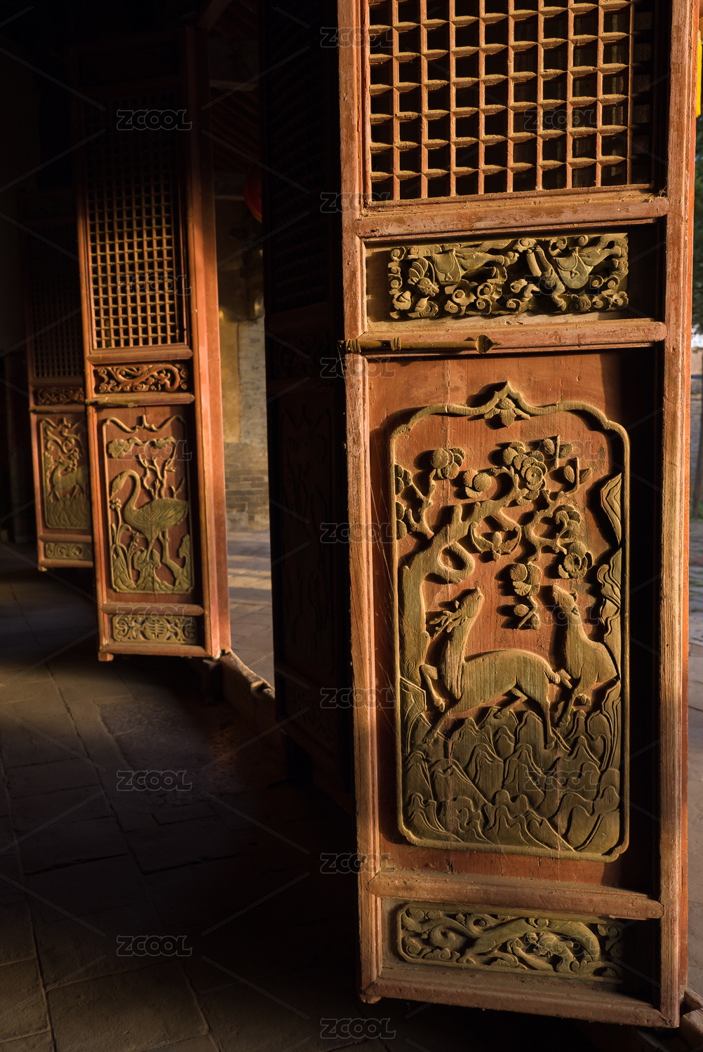 古代建筑木雕门,历史文物雕刻艺术阳光寺庙