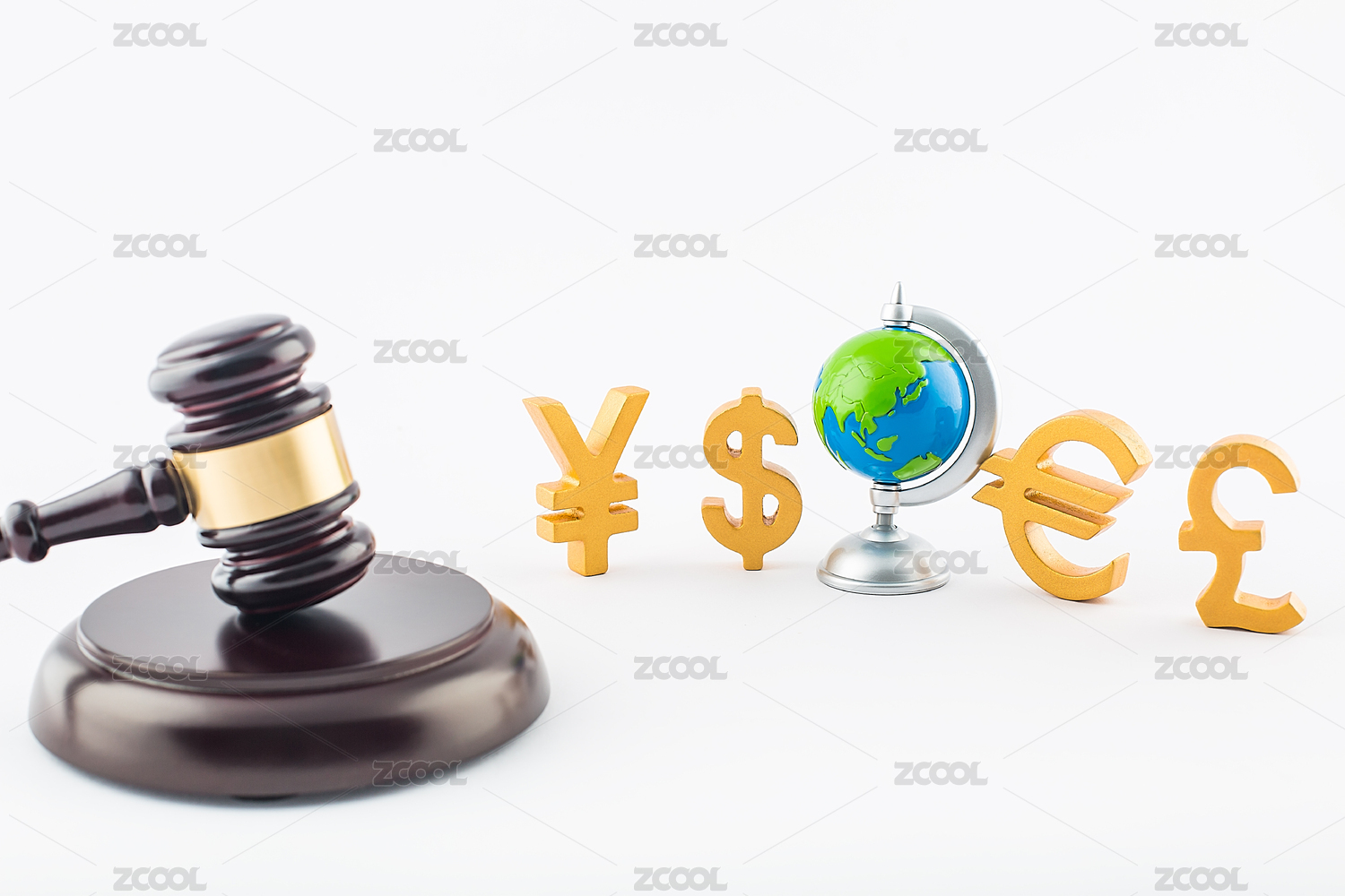 法槌和货币符号,自贸港法和关税法概念。