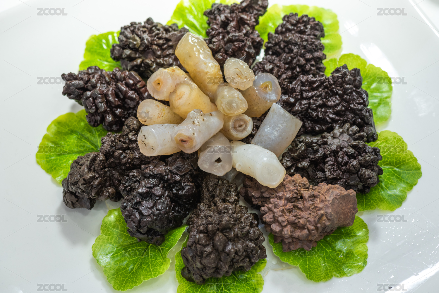 新疆玛瑙雕刻而成的葱烧海参摆件