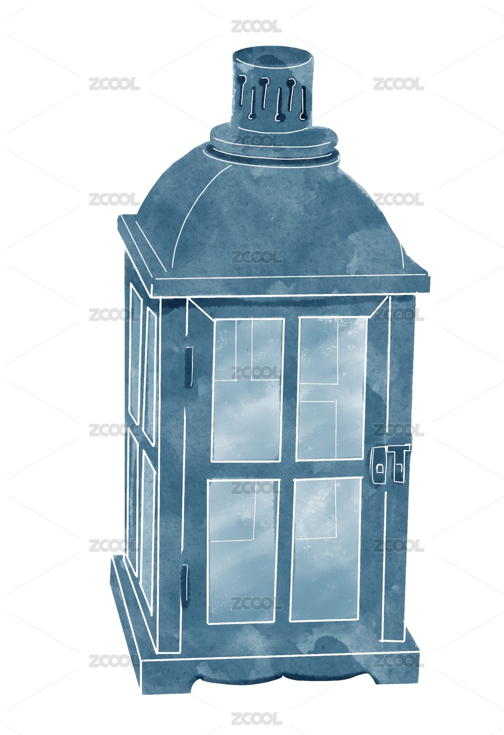手绘水彩欧式复古玻璃烛台马灯摆件
