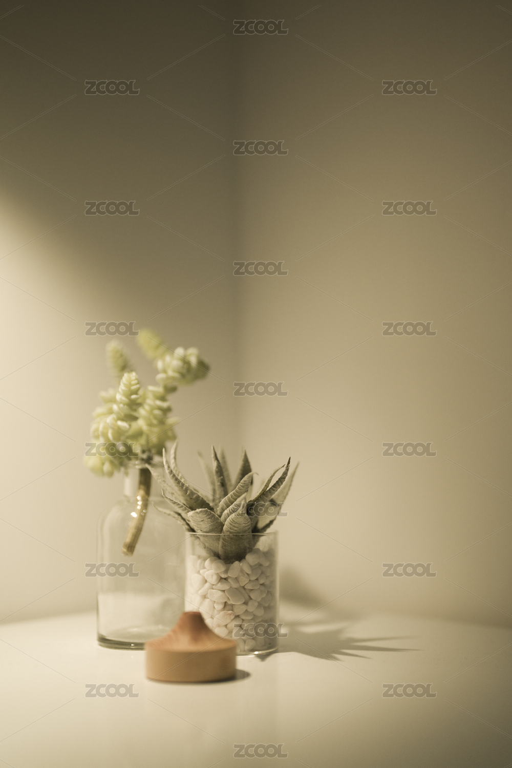 柔光照射的角落摆件和绿植