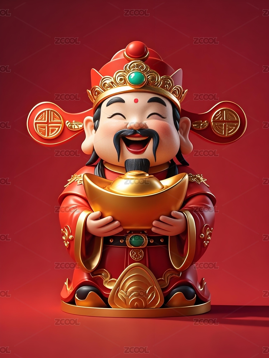 财神爷财富泥塑桌面摆件素材