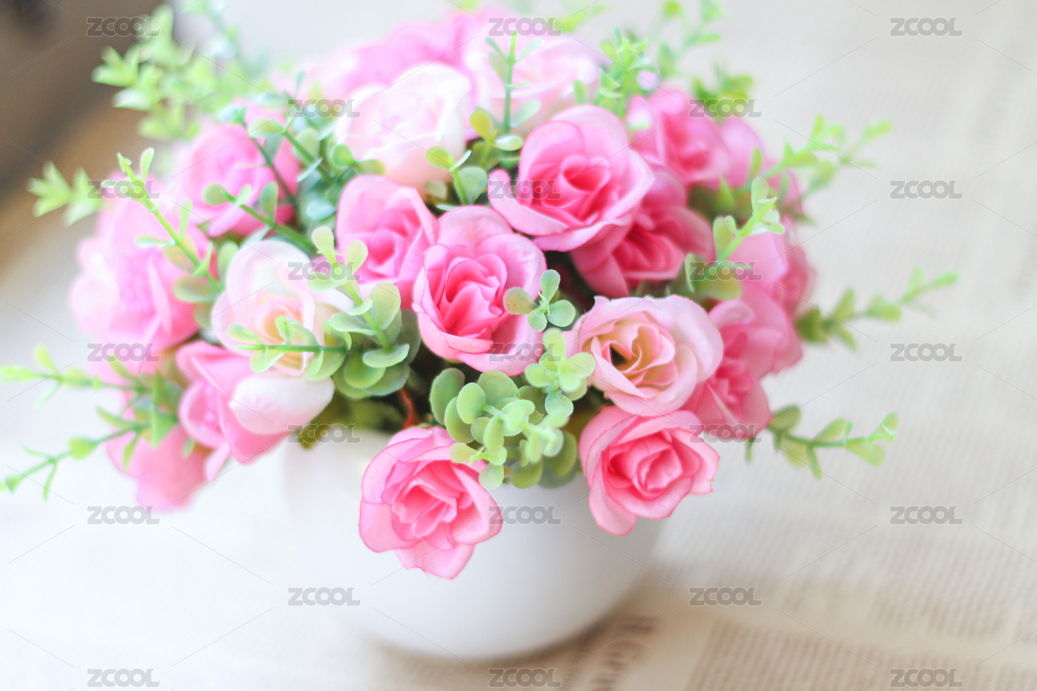 室内家居玫瑰白色花瓶套装摆件