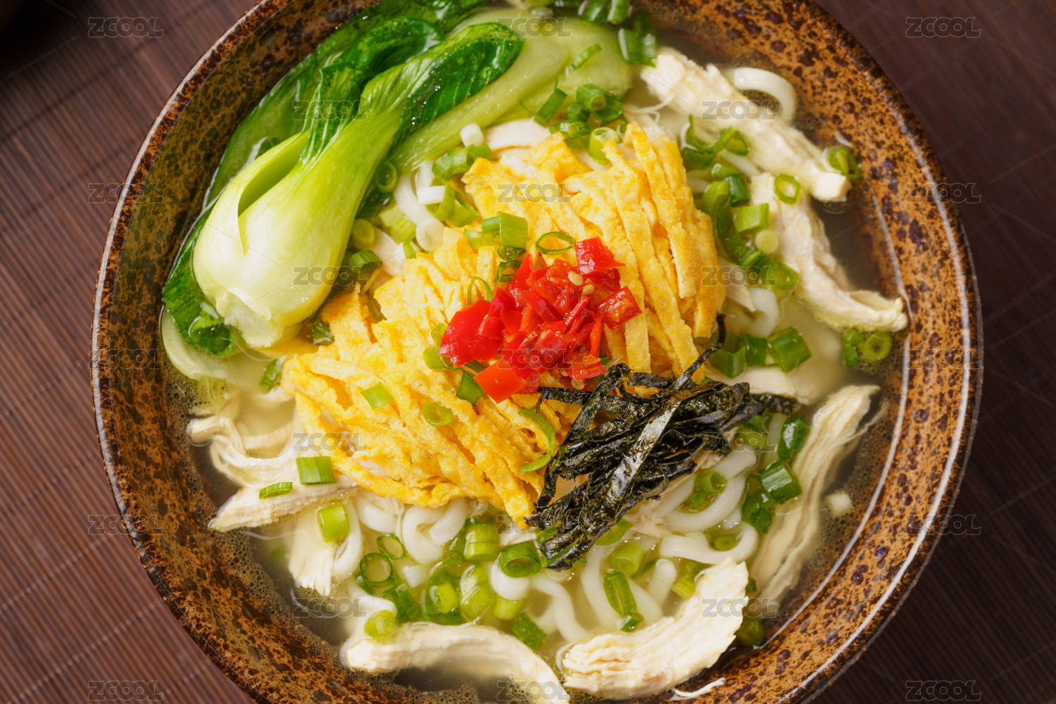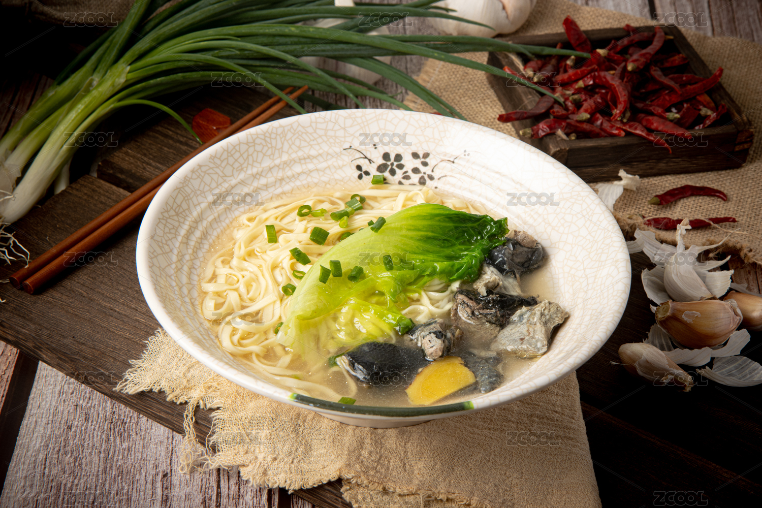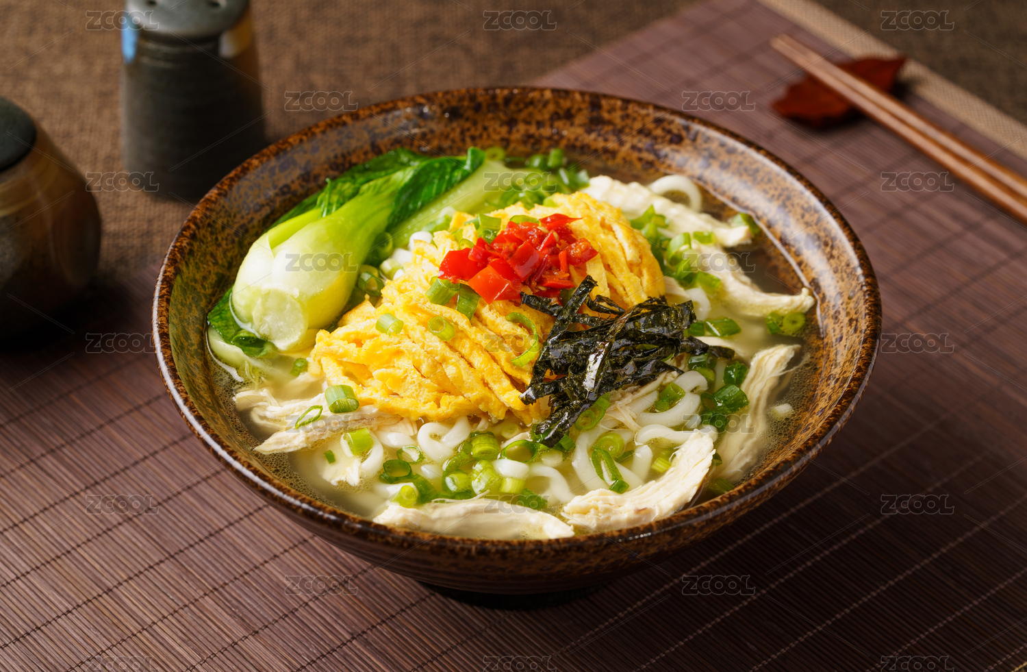 暗色背景下的特色中餐鸡汤面