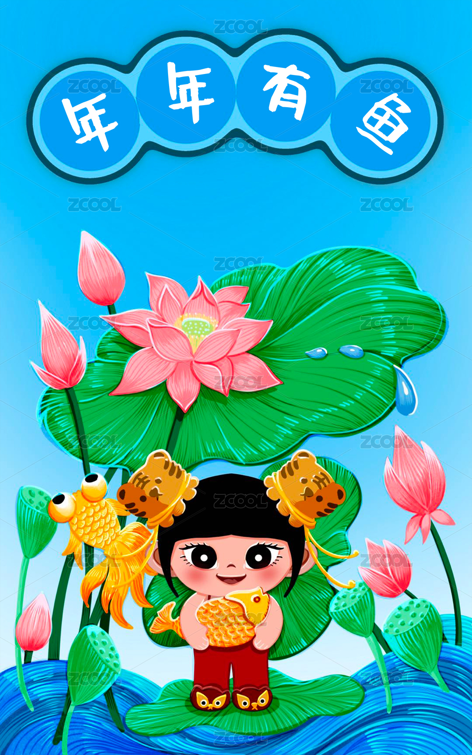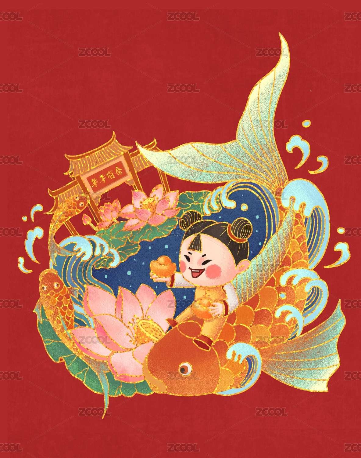 做锦鲤飞来的中国娃娃带着元宝祝年年有余