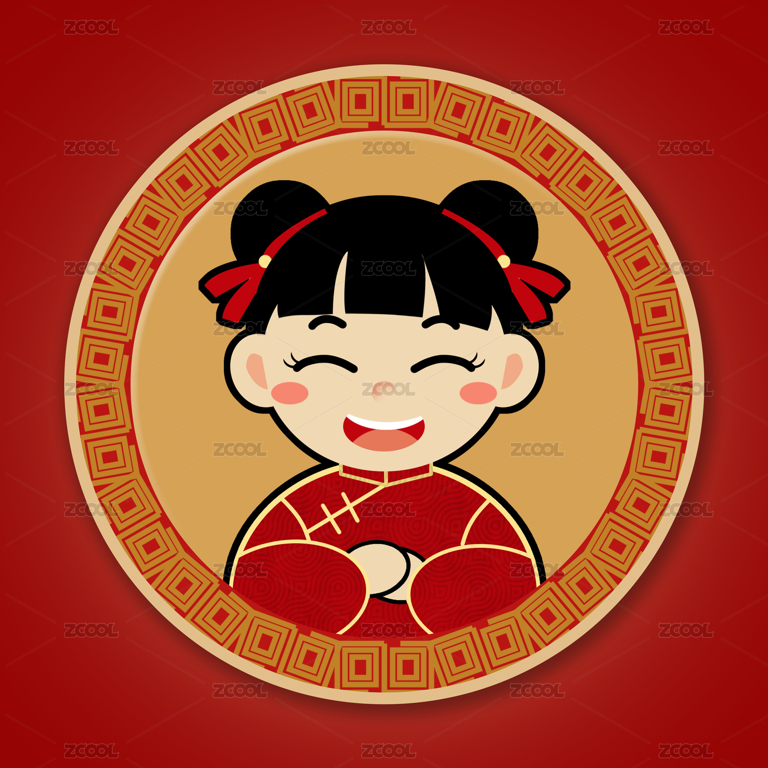 中国娃娃可爱人物品牌设计插画