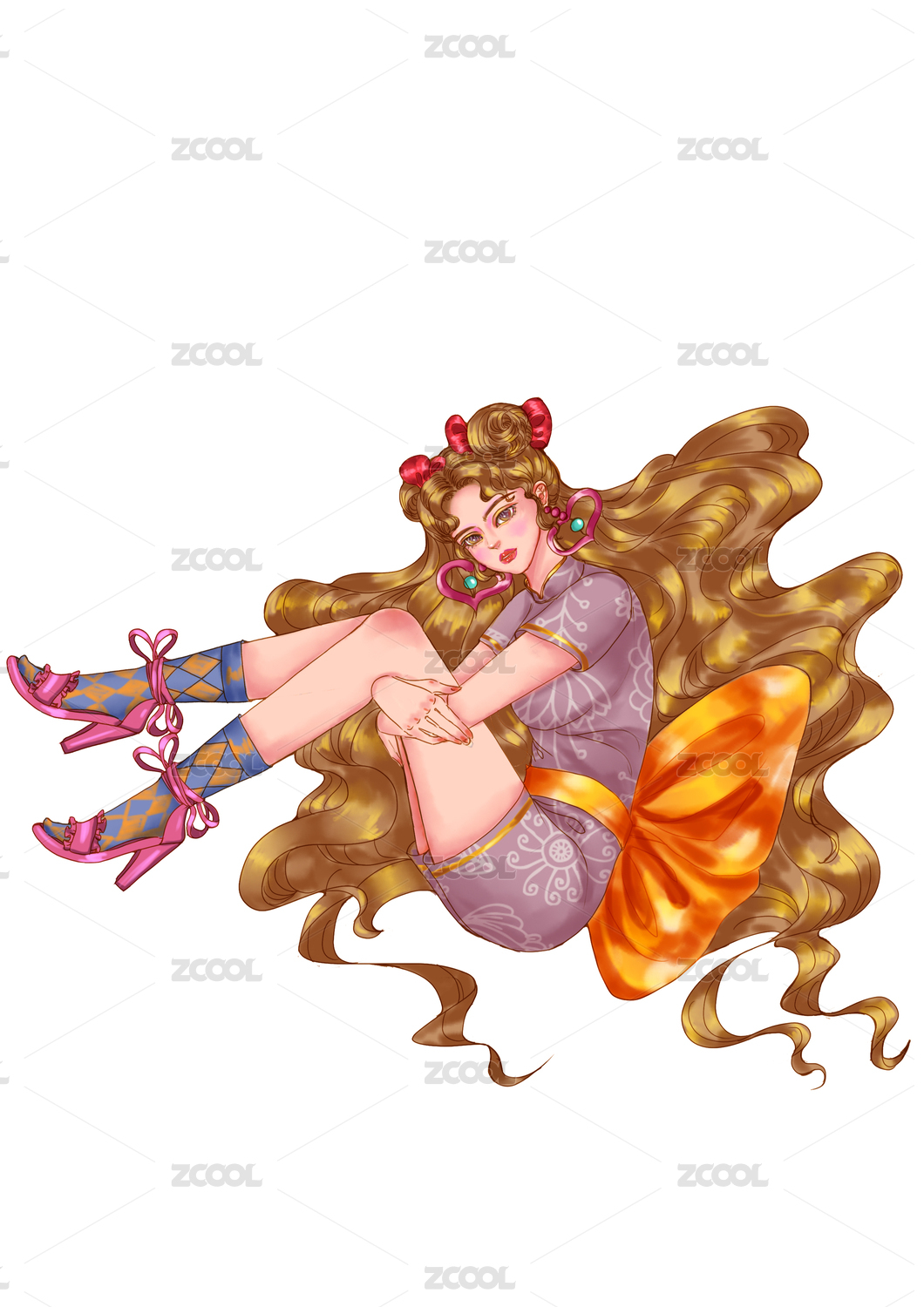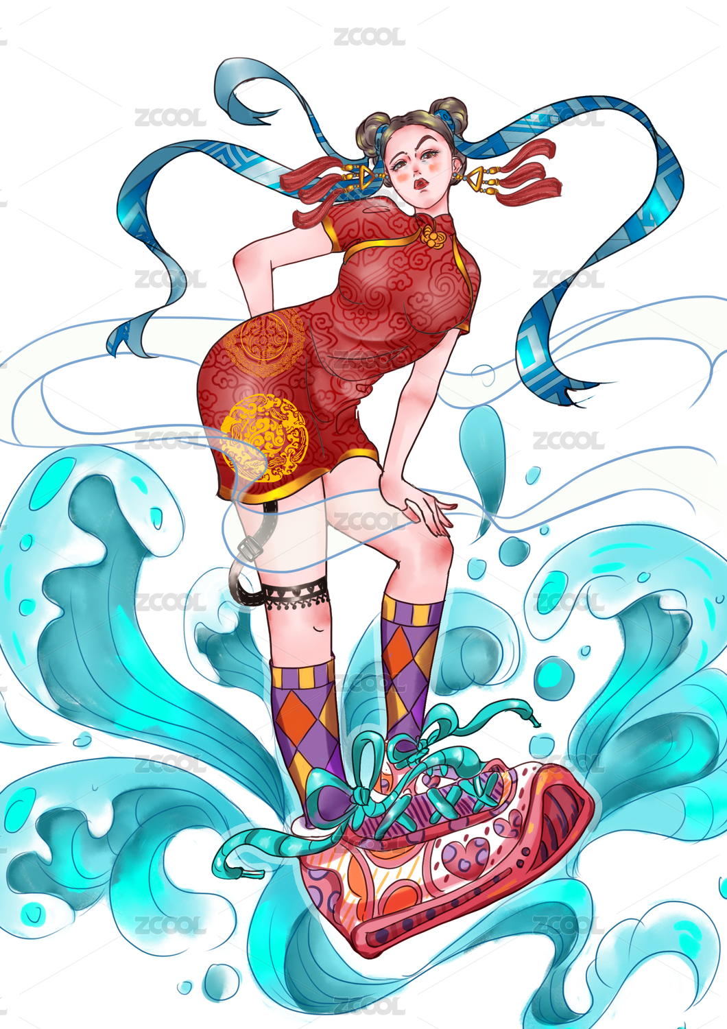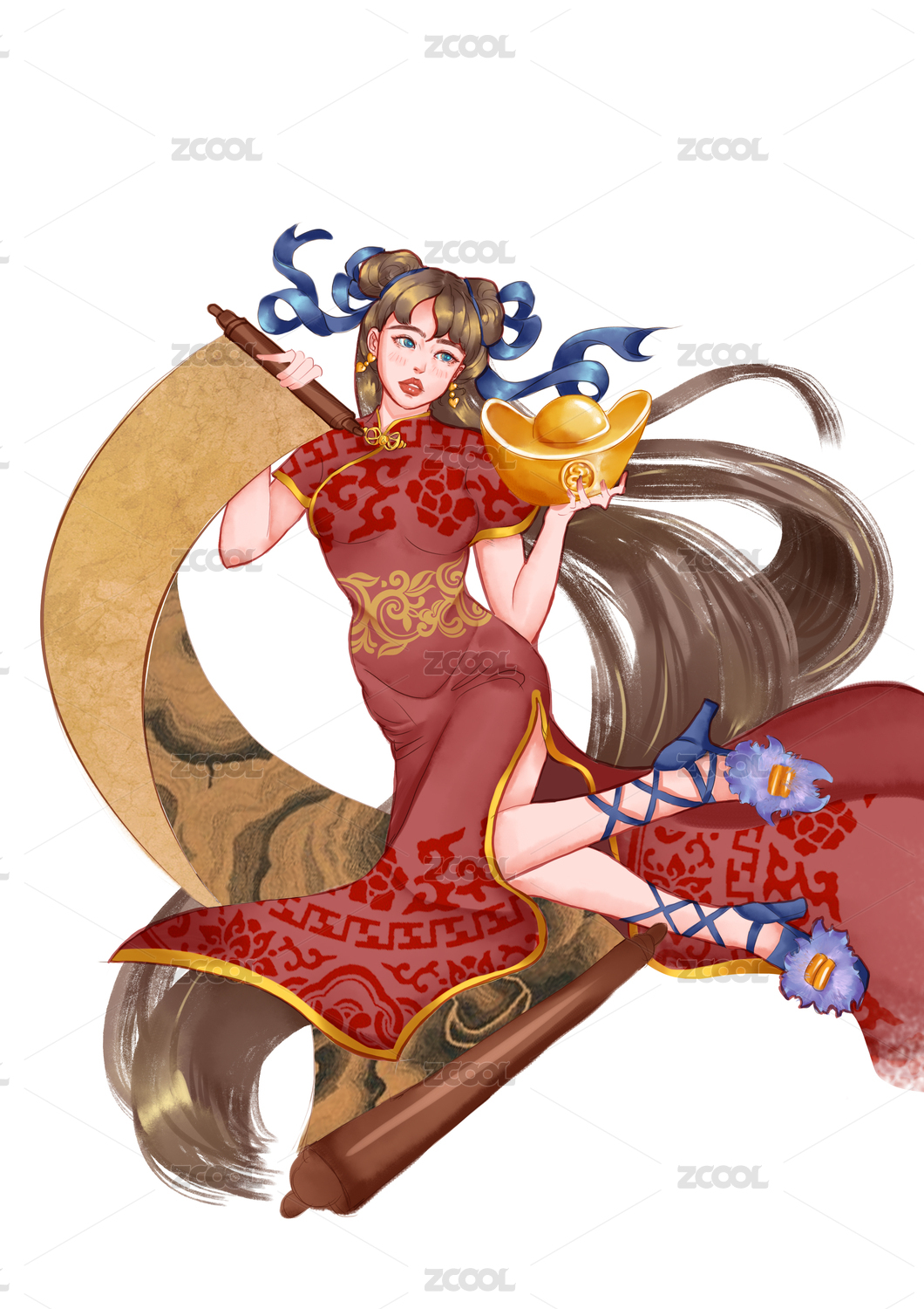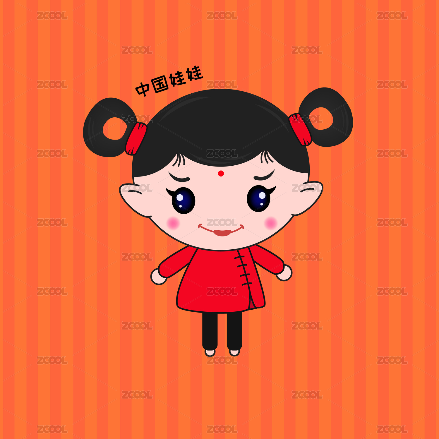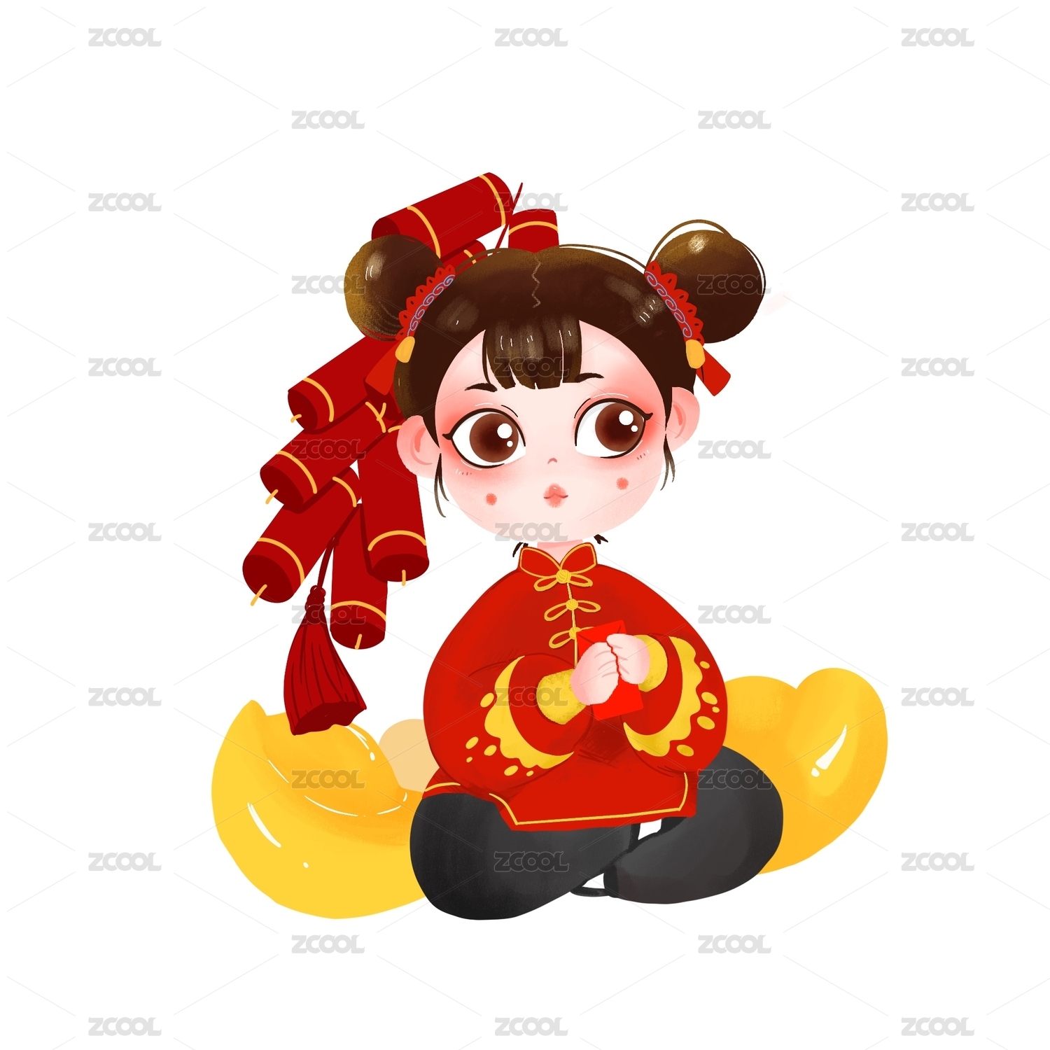 国潮风节日快乐恭喜发财美女财神中国娃娃