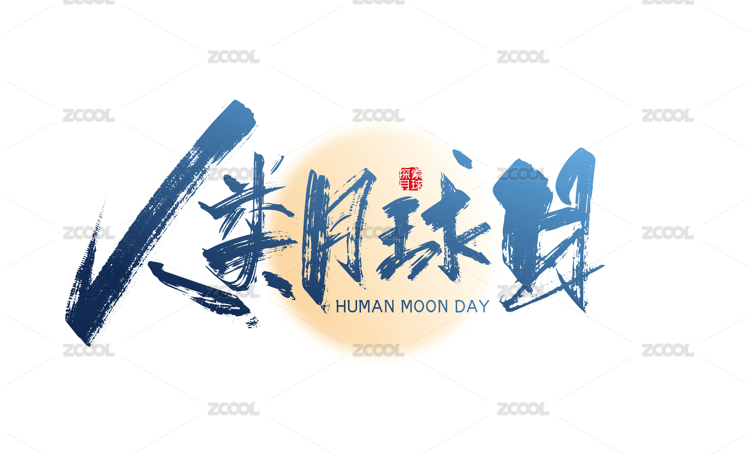 人类月球日手写汉字书法艺术字体