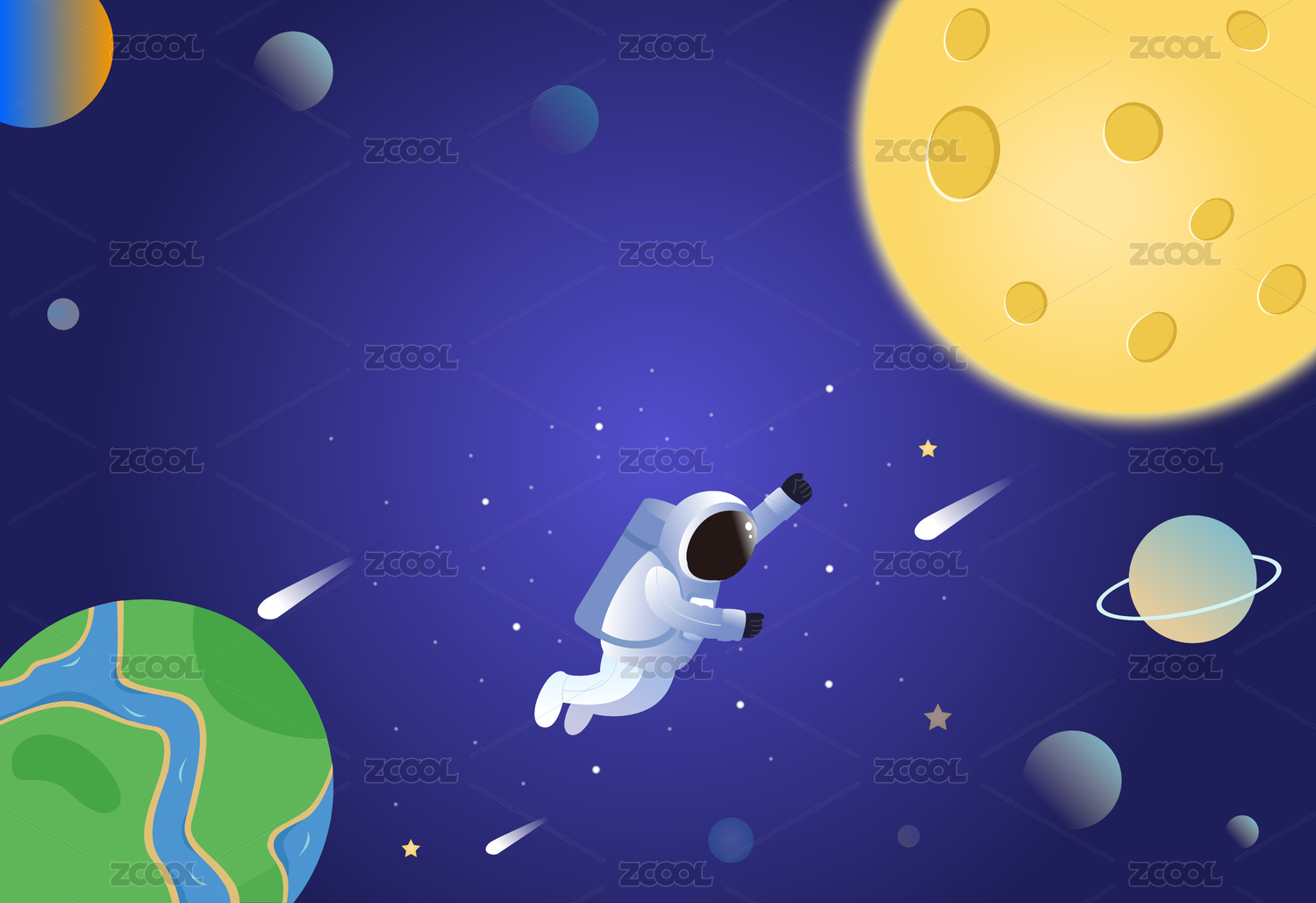 科技风矢量渐变宇航员太空插画