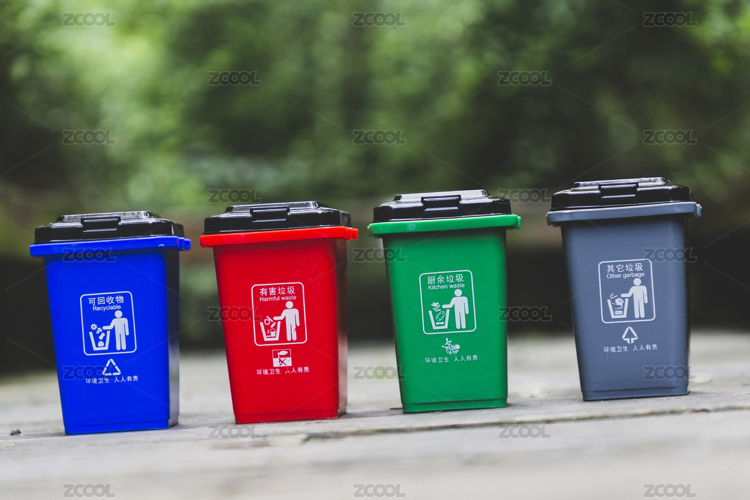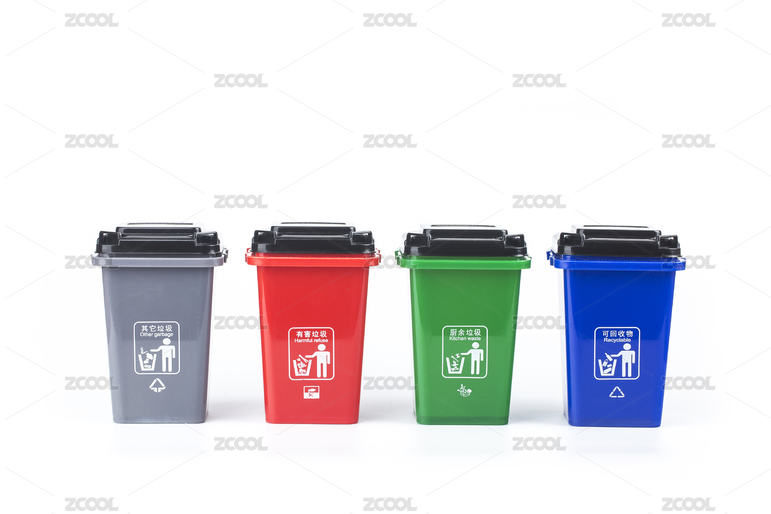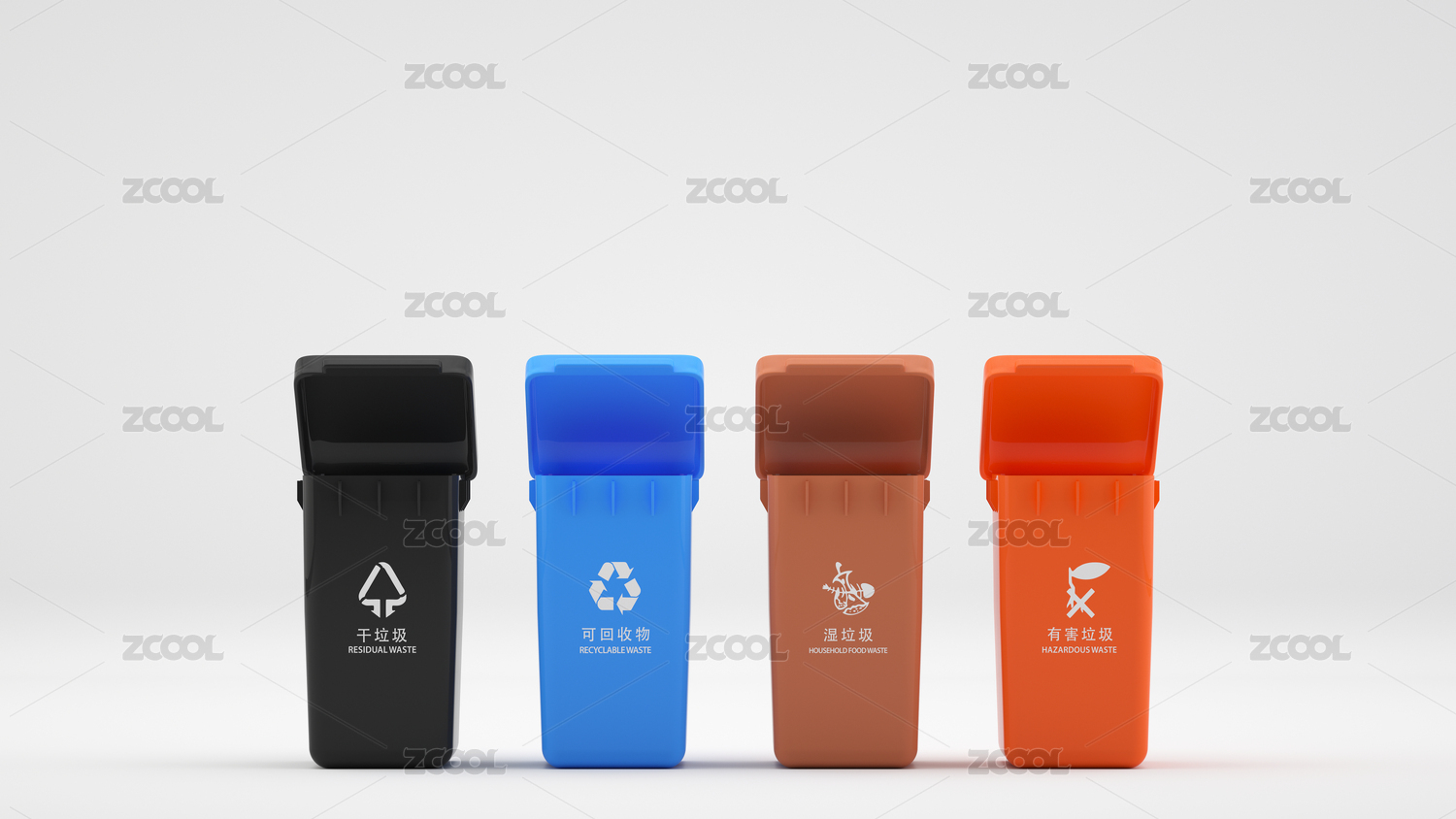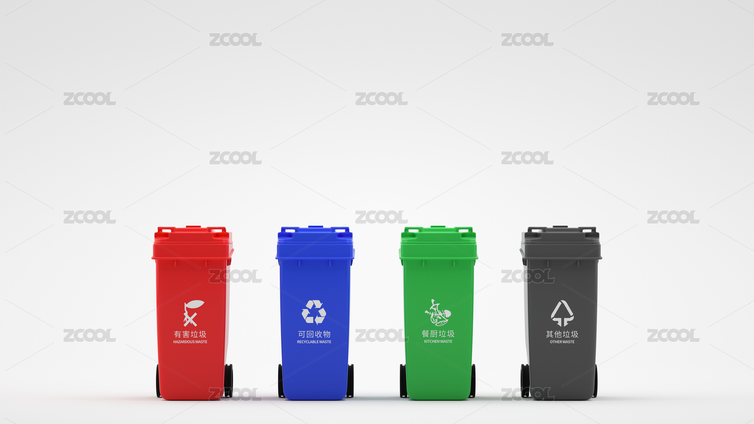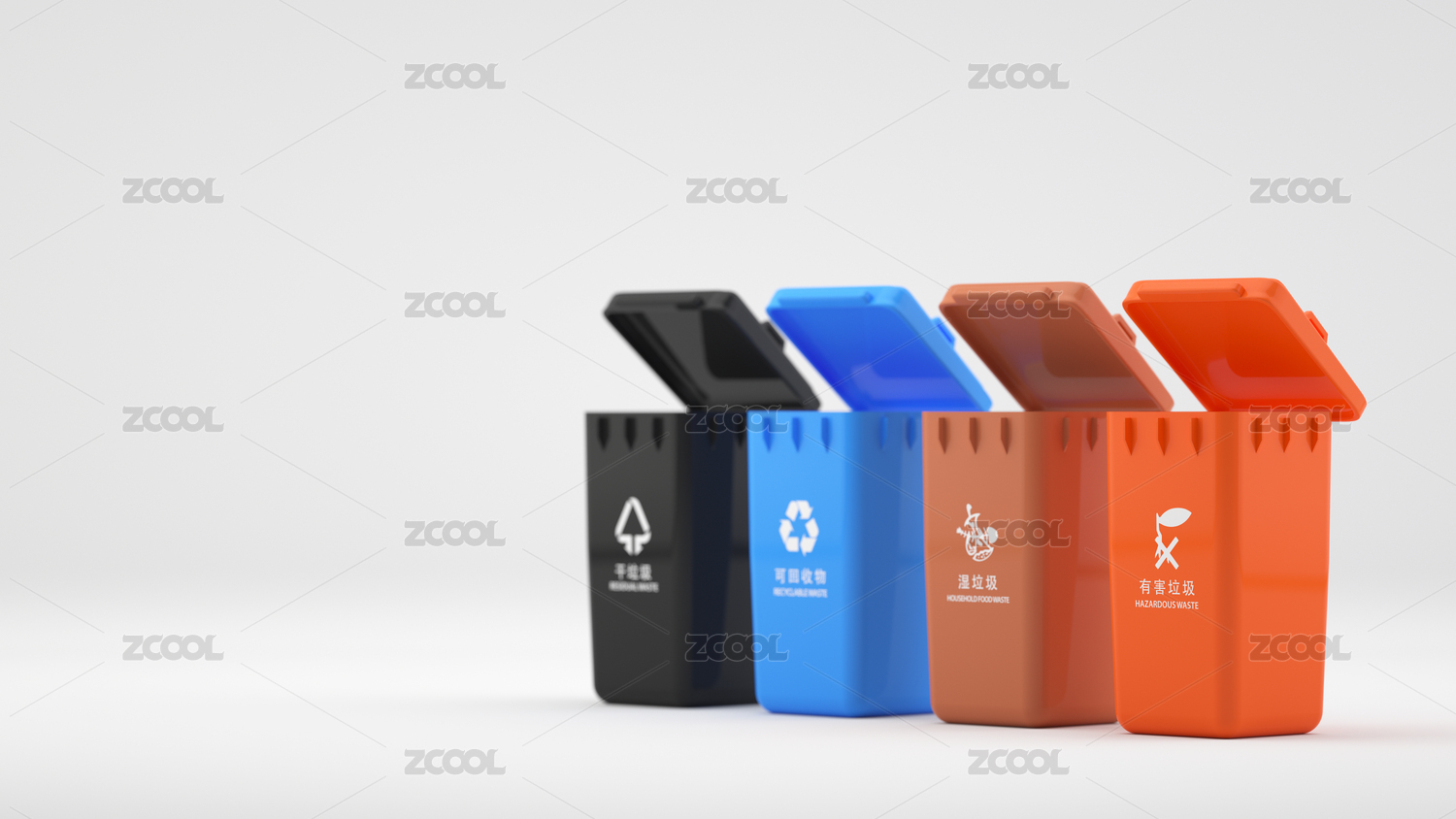 3d渲染的北京标准的垃圾分类题材的垃圾桶