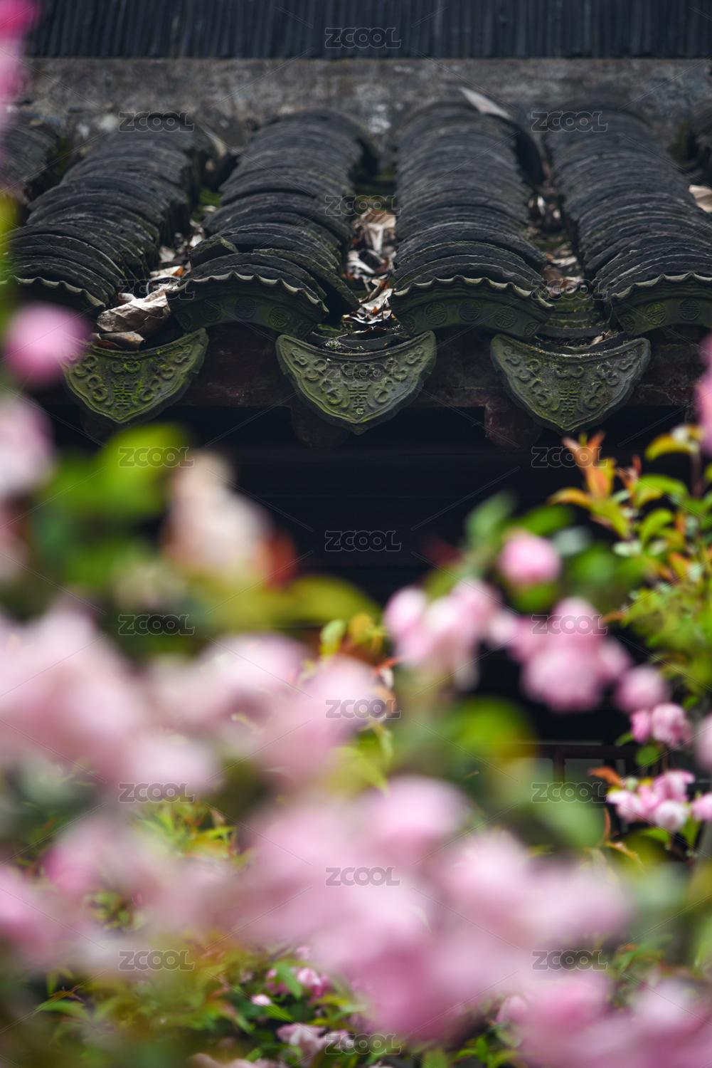 中式老民居屋檐瓦当特写
