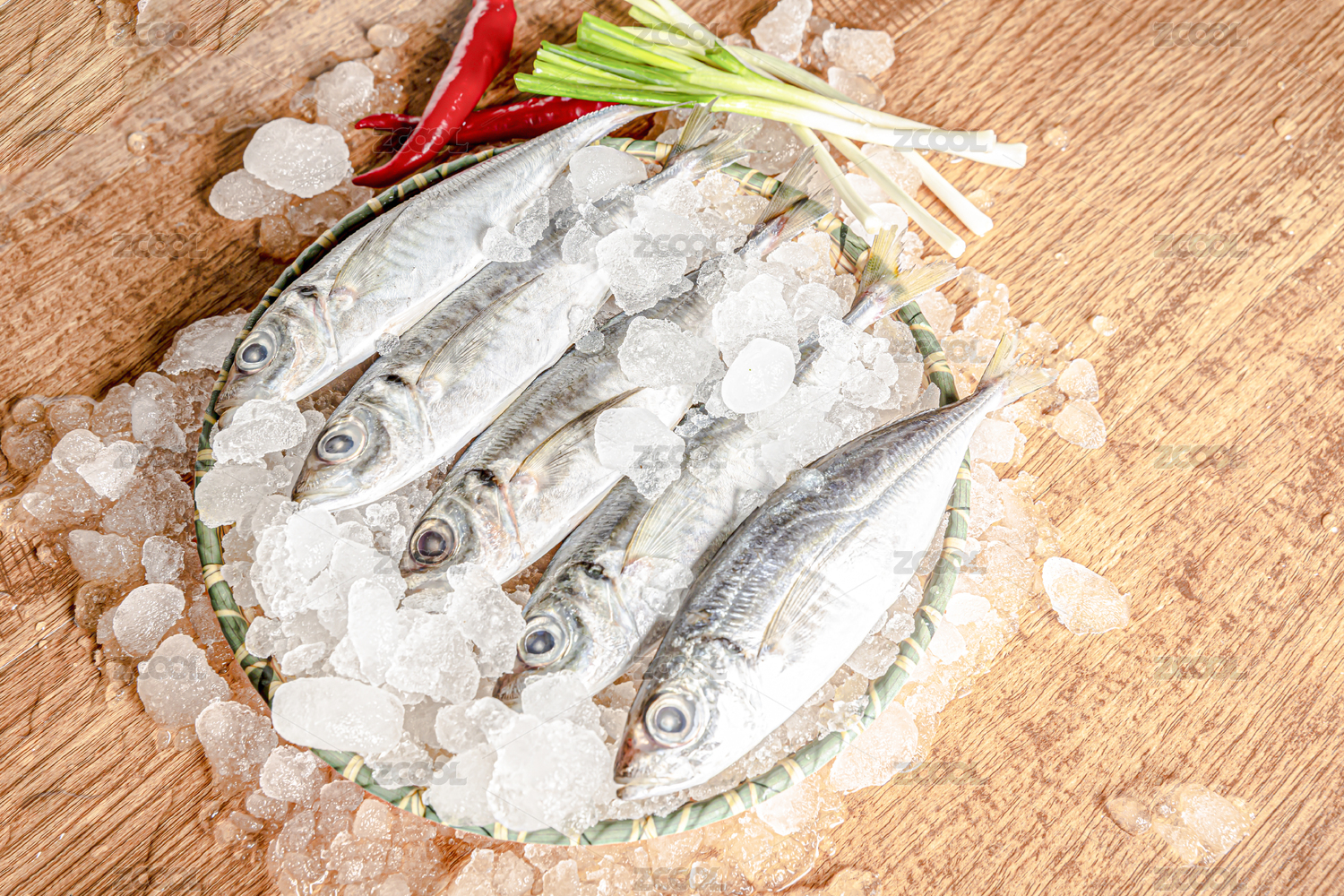 圆形的盆子里装着冰镇的巴浪鱼