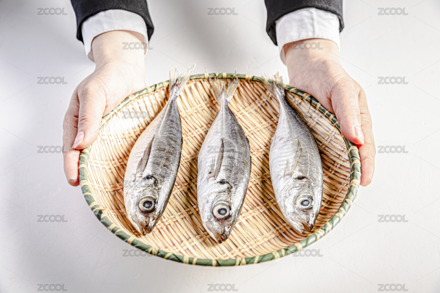 女性的双手捧着装了巴浪鱼的圆形盘子