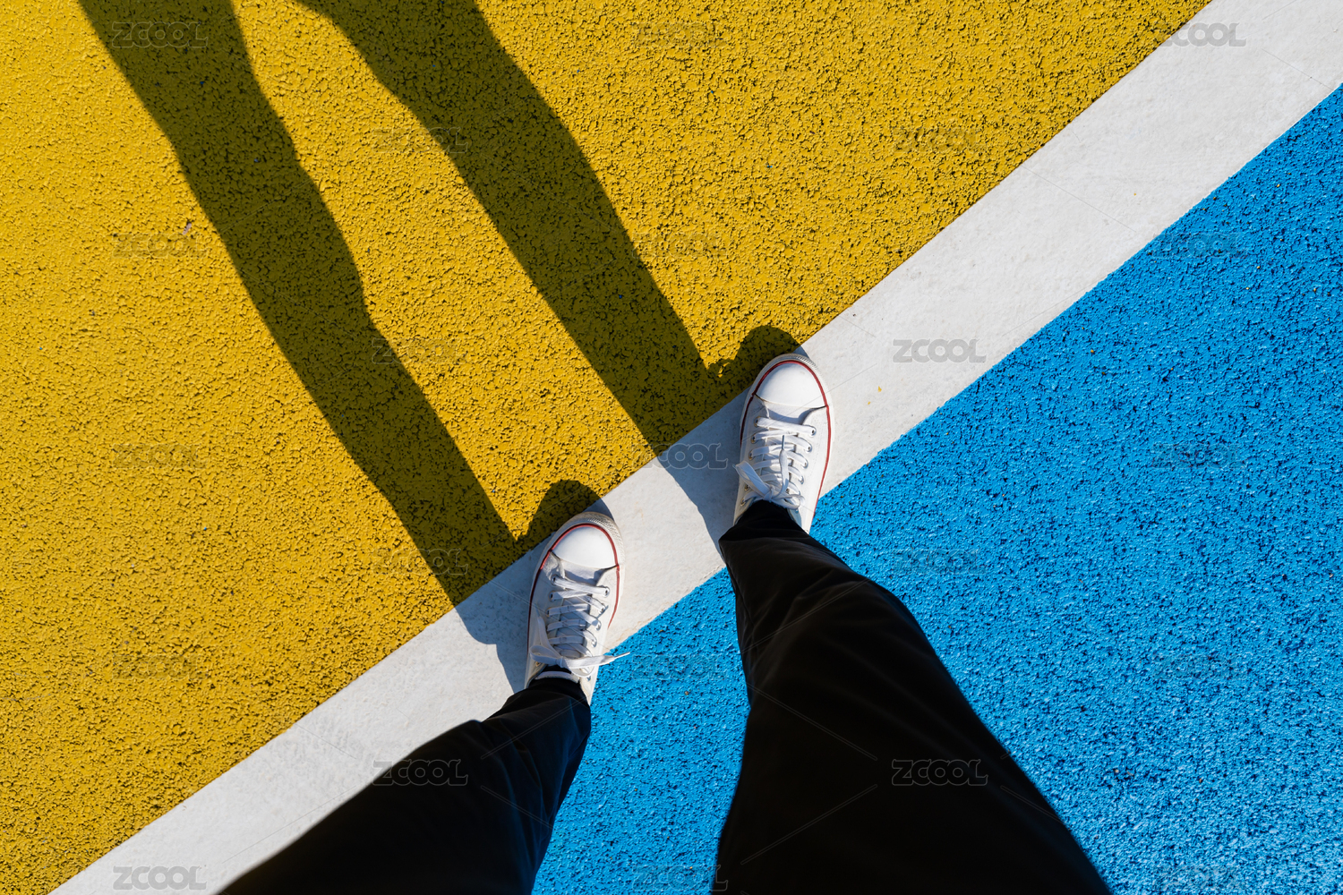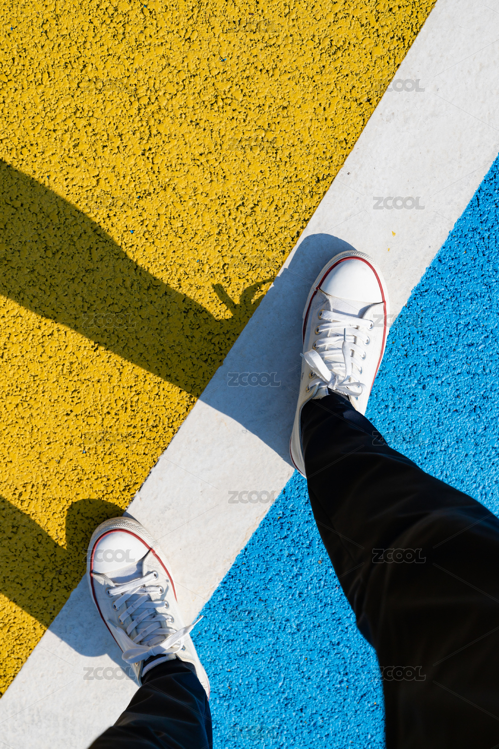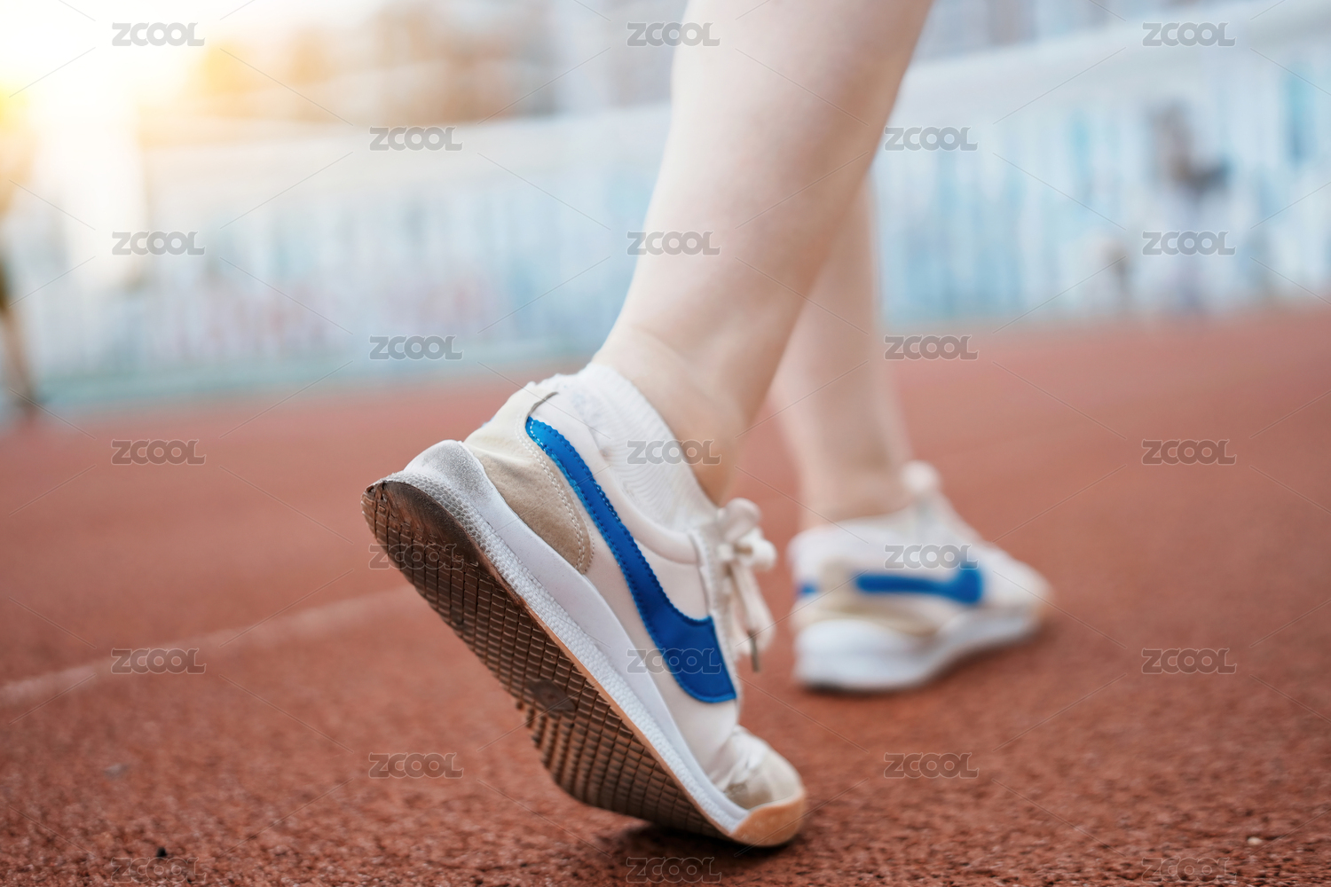 跑道上行走的人物脚部特写