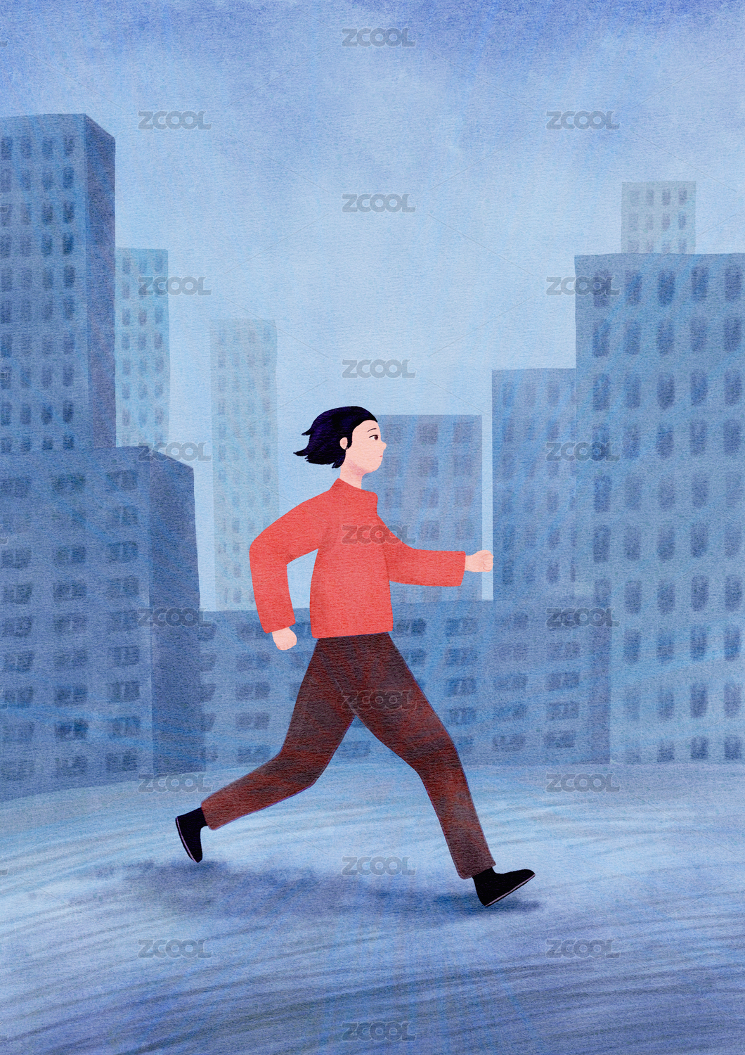 城市中一个人大步行走