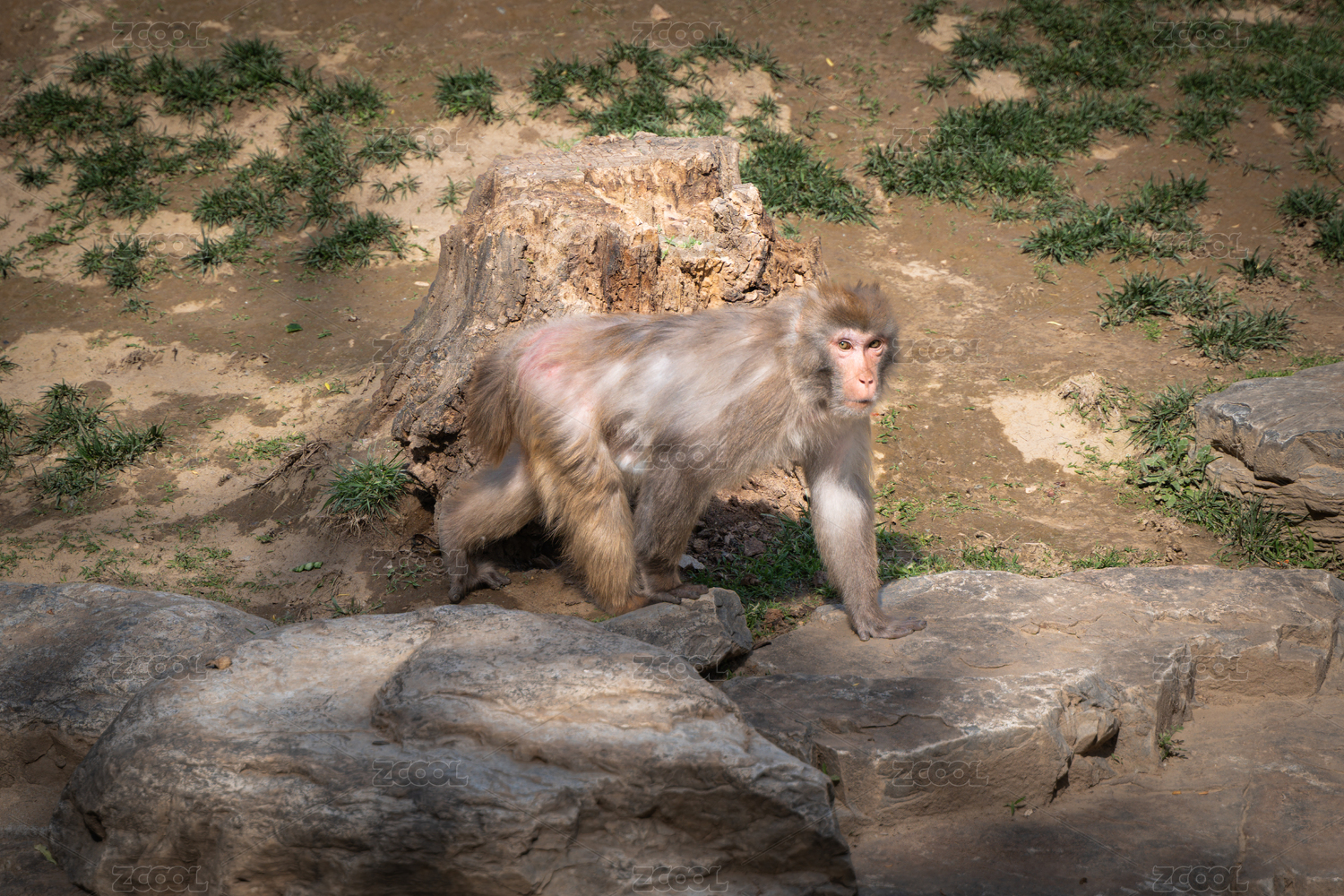 猕猴在地上行走