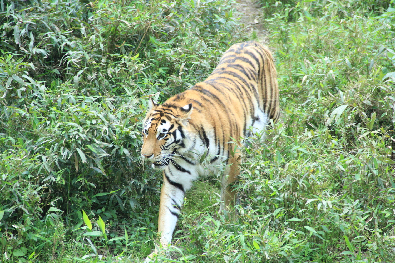 老虎在草地上行走的画像