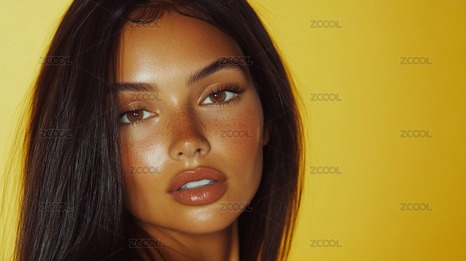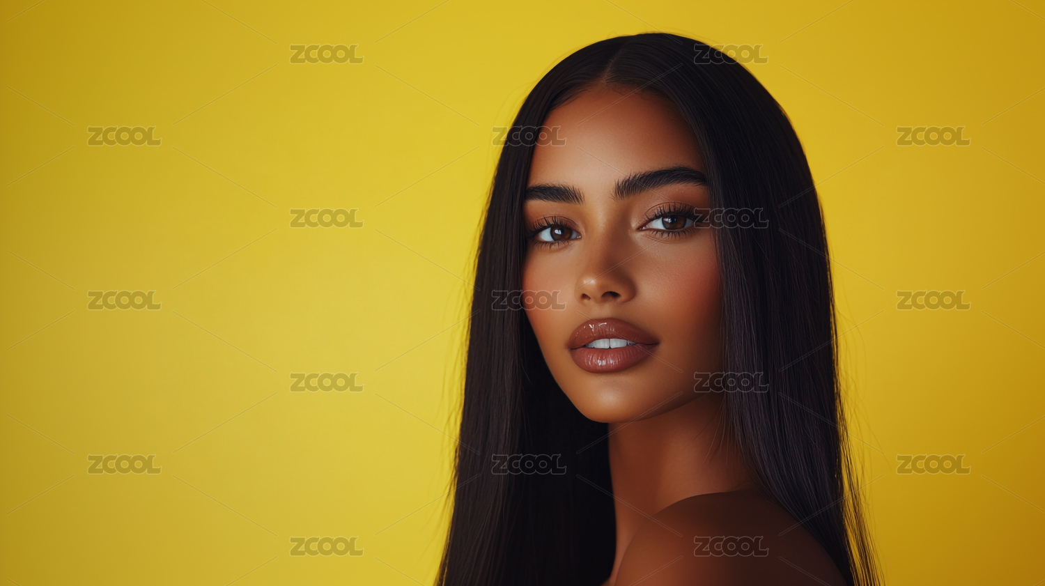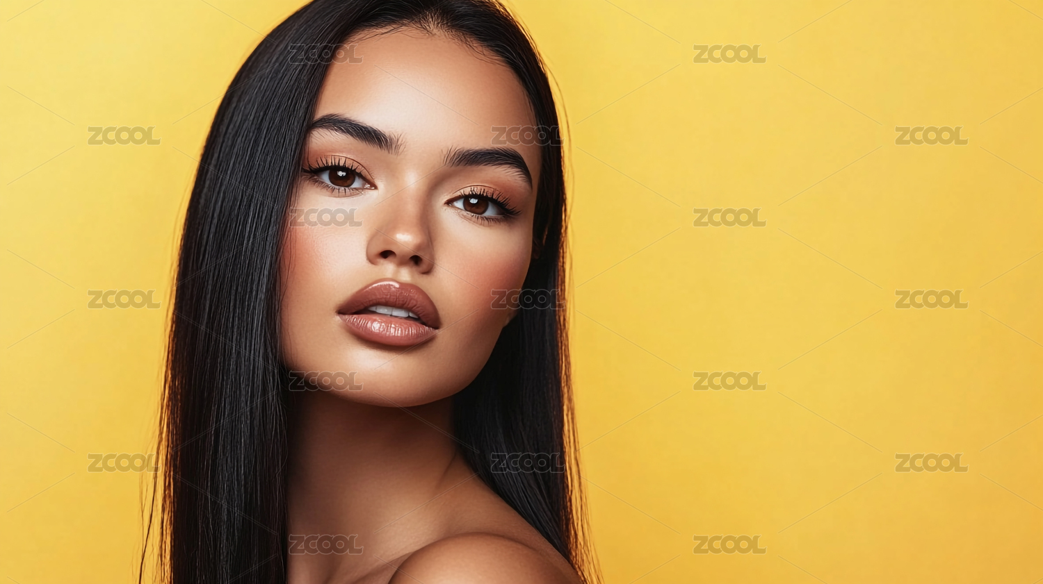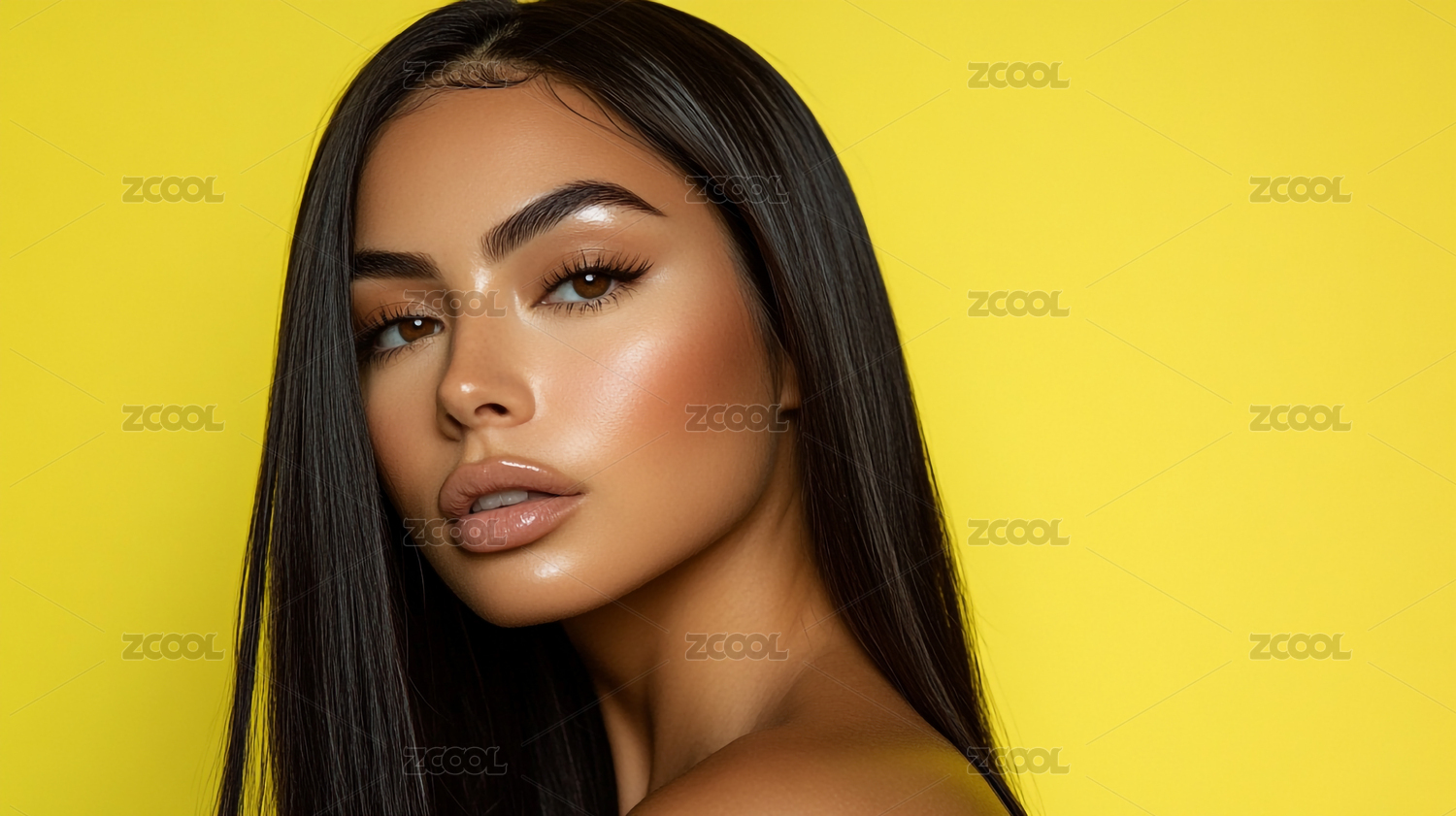 时尚优雅一头黑色长发的欧美女孩模特