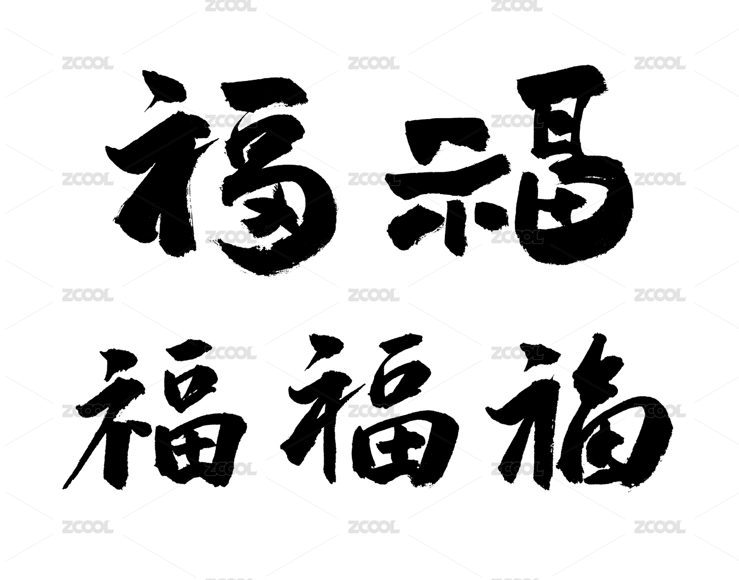 春节祝福手写毛笔字五福临门