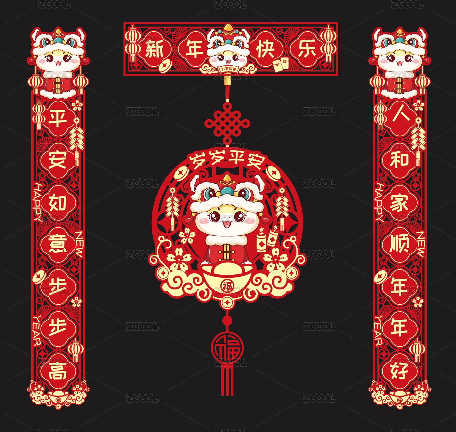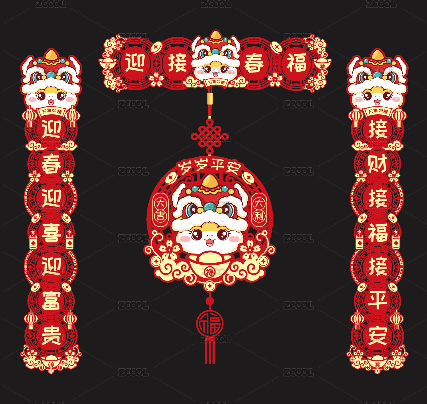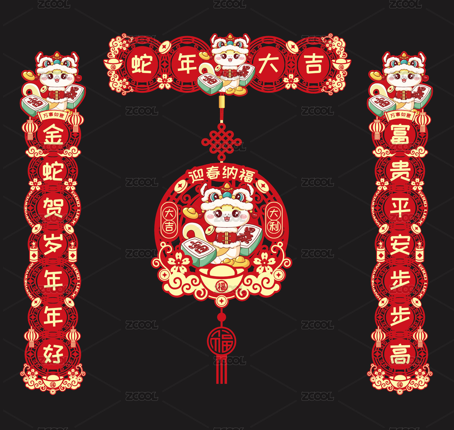 蛇年新年红包 窗花对联 文创设计